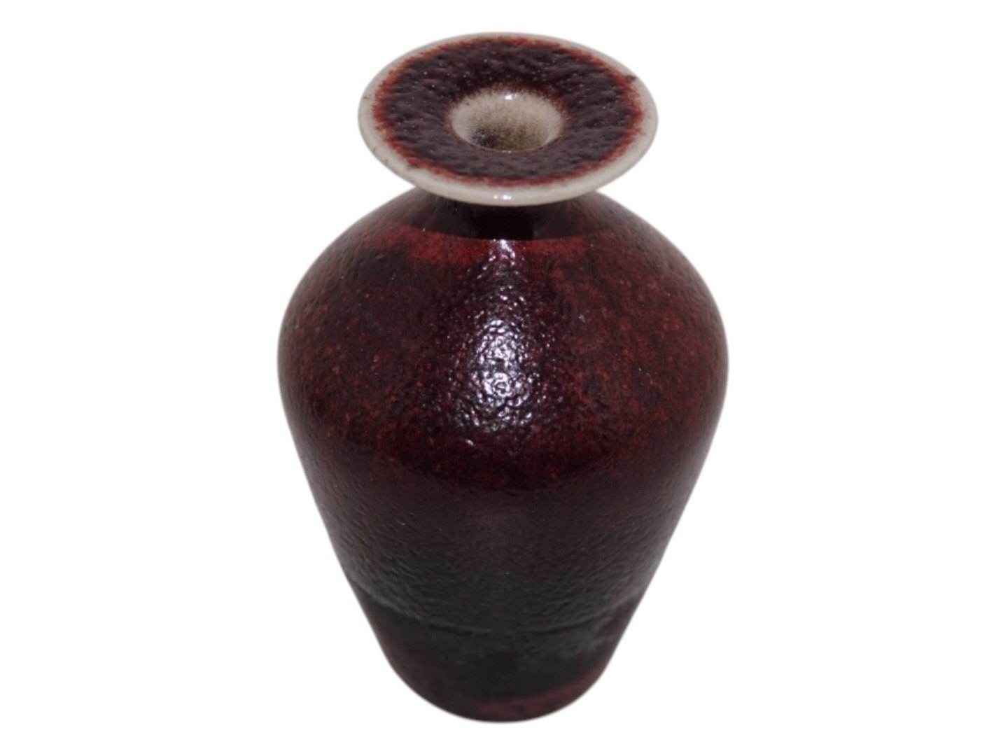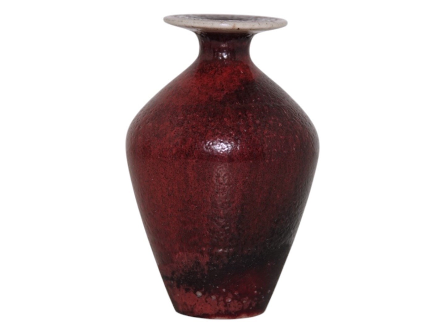 Höganäs keramik fra Sverige, miniaturevase med rød glasur designet af John Andersson (1899-1965).