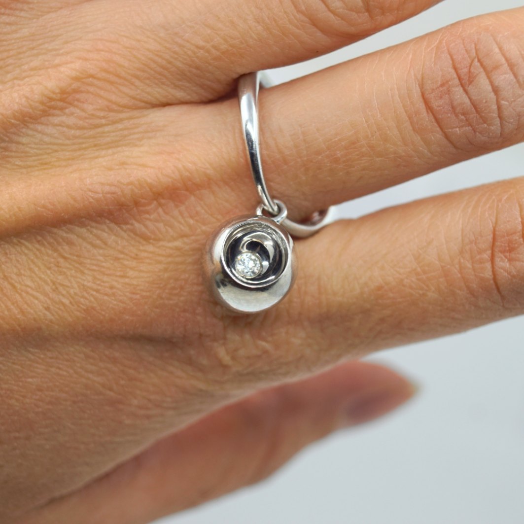 Jacqueline Rabun for Georg Jensen; Cave ring 18 kt. hvidguld med diamant. Ring str. 61.
