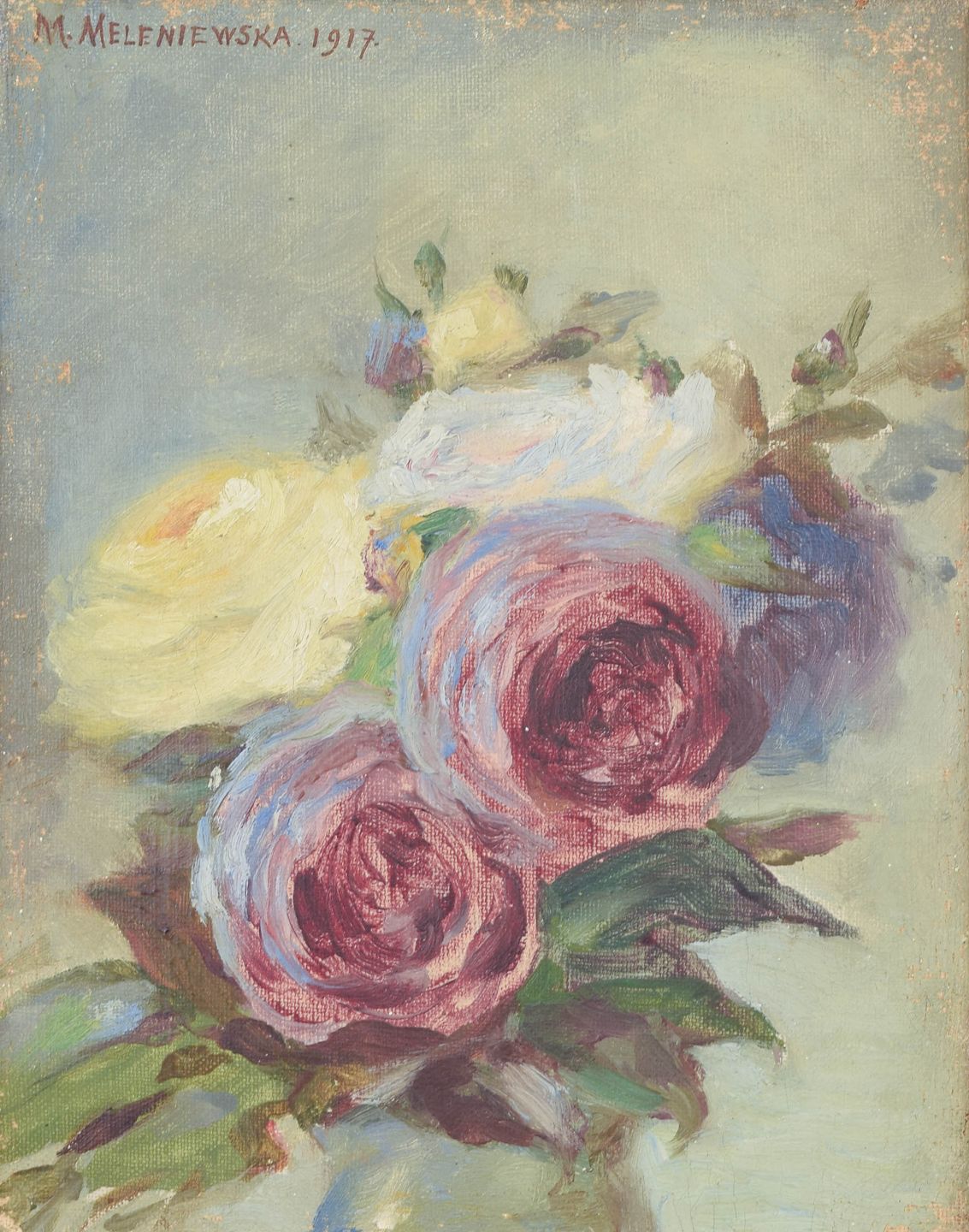 Matilda Meleniewska (1869-1930) var en polsk maler, uddannet ved Adrian Baranieckis højere kurser for kvinder i Kraków, med videre studier i Dresden, München og på Académie Julian i Paris. Hun deltog aktivt i udstillinger i Kraków og Lviv og blev anerkendt for sine stilleben og portrætter. Hendes værker kombinerer akademisk træning med en følsom koloristisk tilgang, ofte med fokus på blomsterkompositioner og intime motivkredse, hvilket placerer hende blandt de bemærkelsesværdige kvindelige polske kunstnere fra det tidlige 20. århundrede.