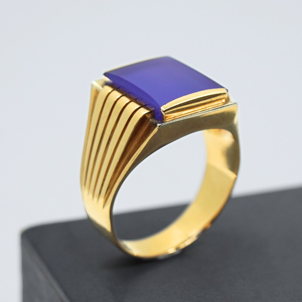 Large ring of 18k gold, set with a blue stone. Ring size 68.