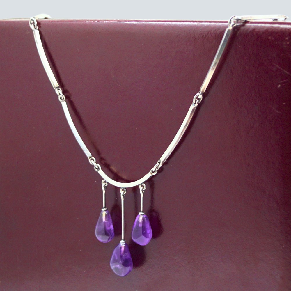 Niels Erik From; A necklace of sterling silver set with amethysts