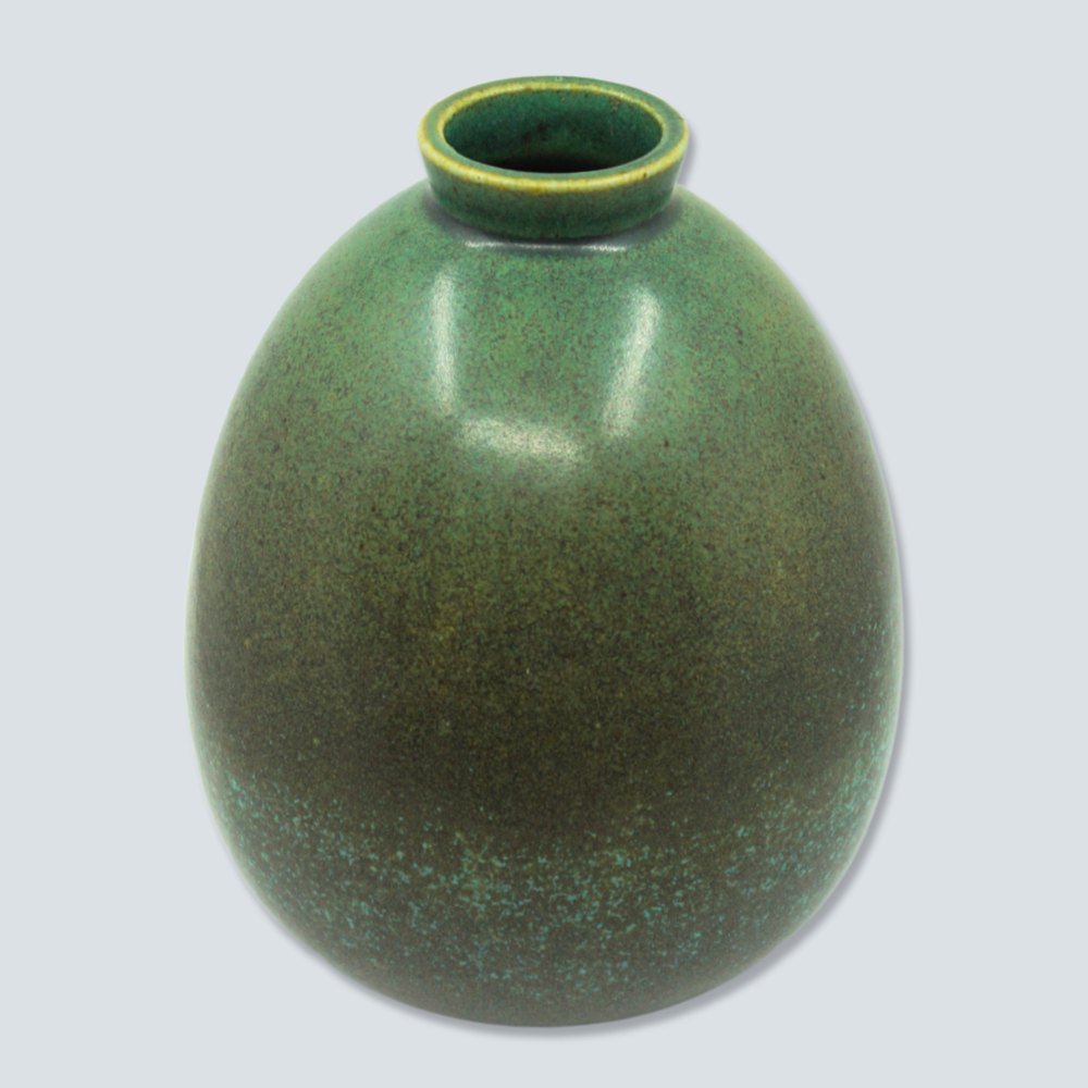 Saxbo, Eva Stæhr-Nielsen; Vase af stentøj dekoreret i blå-brunlig glasur, nr. 287