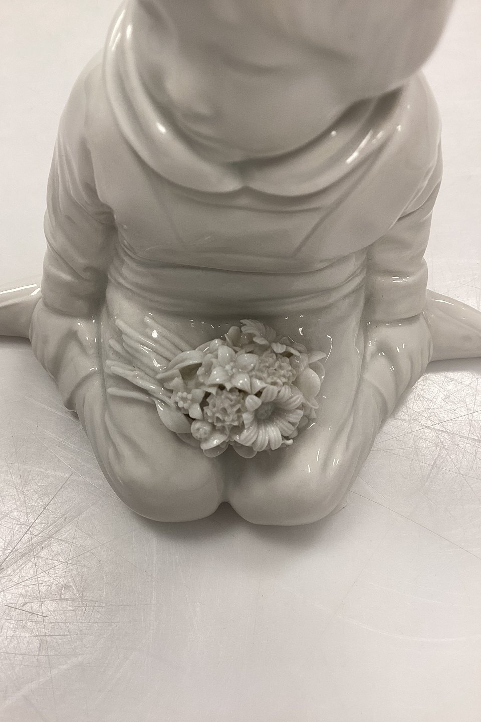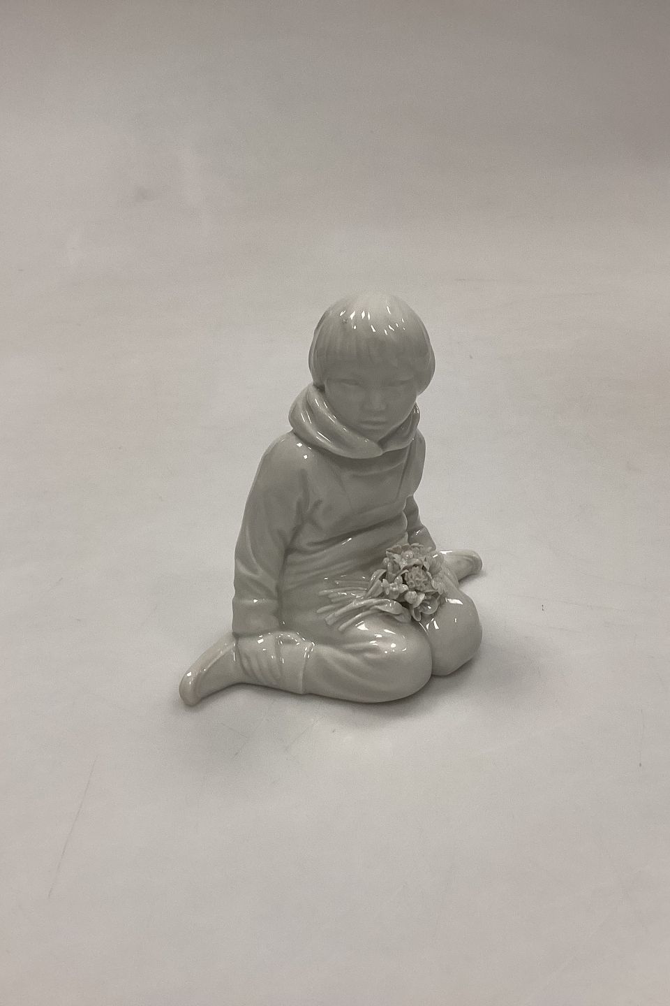 Royal Copenhagen Blanc de Chine Figur - Dreng med blomster fra Grønland No. 12419. Designet af Carl Martin-Hansen. Enkelte små chips på blomster.