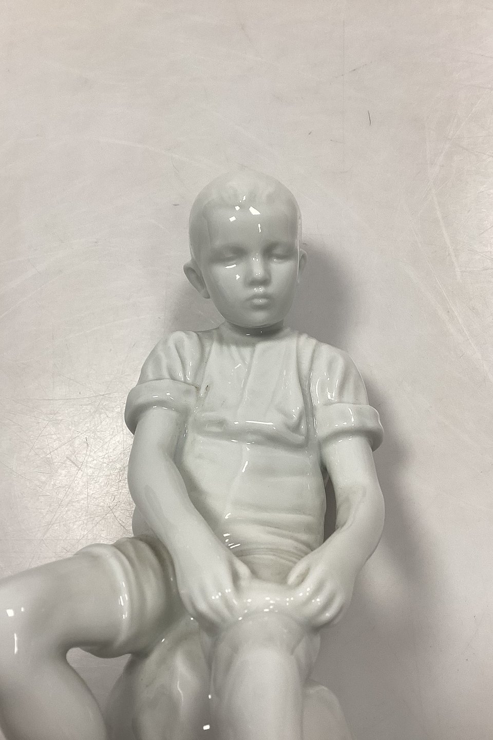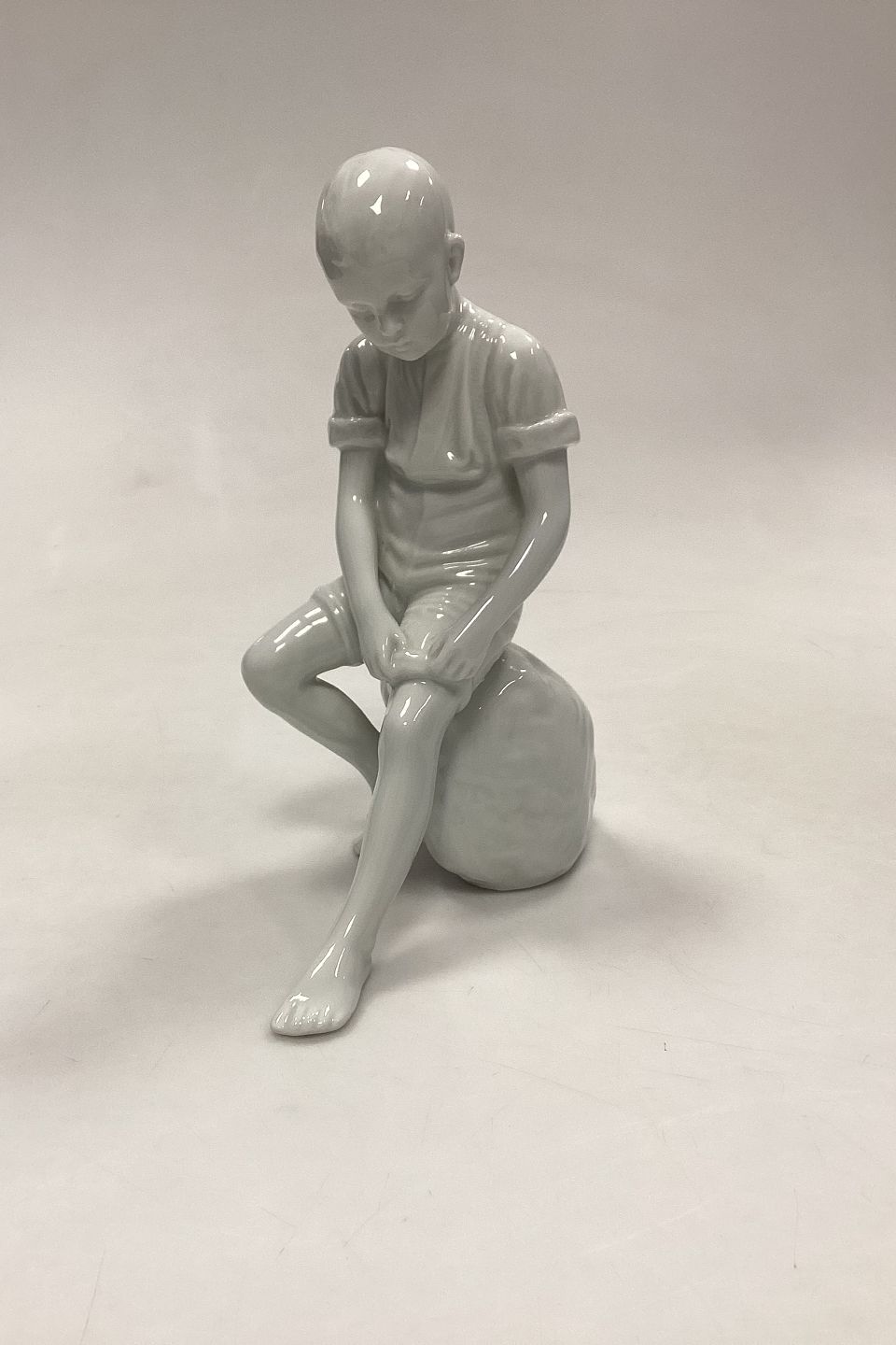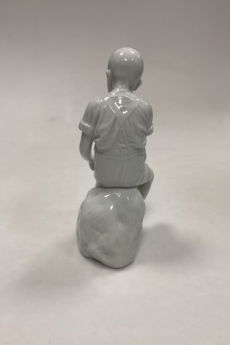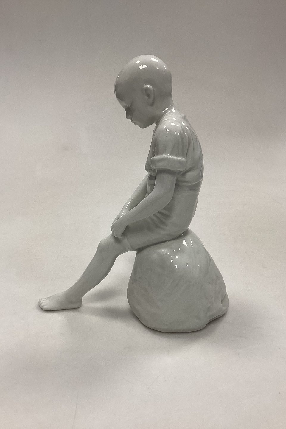 Royal Copenhagen Blanc de Chine Figur - Dreng på Sten No. 520. Designet af Ingeborg Plockross Irminger. Oprindelig en Bing og Grøndahl figur, men relanceret i blanc de chine af R.C. i 2008.