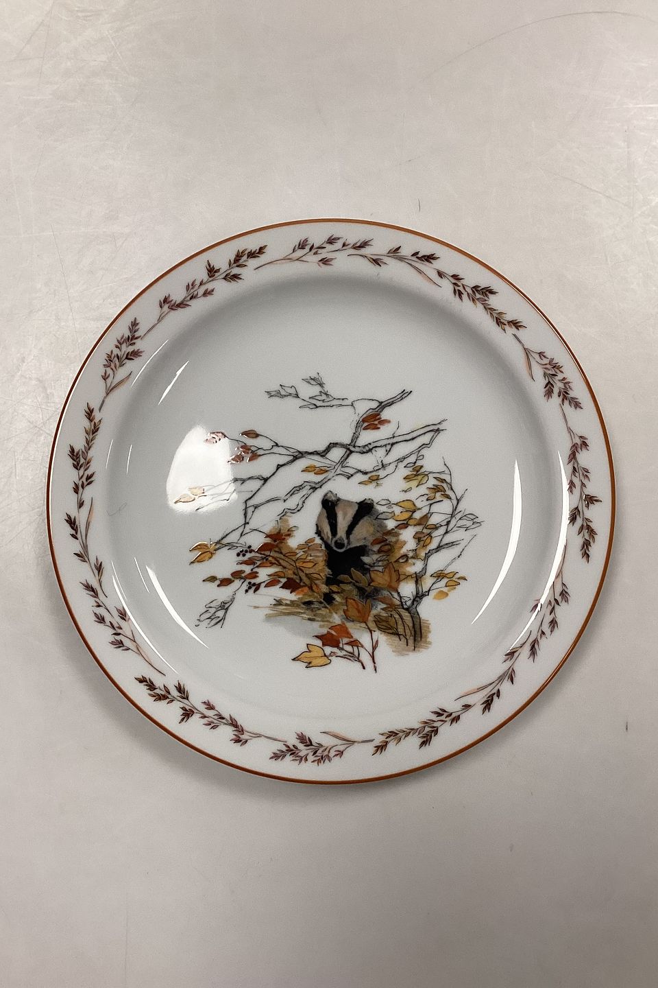Mads Stage Jagtstellet Frokosttallerken. Producent: Seltmann Weiden. Motiv: Grævling.