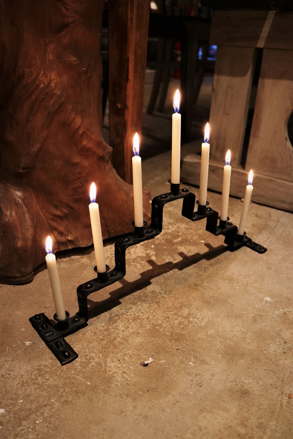 Old Swedish Christmas candlestick "Stair candlestick" in metal with room for 7 pcs. small Christmas candles. H:17,5cm. L: 44,5cm.