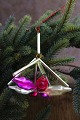 Gammelt juletræspynt i form af farvet glas pynt fra omkring 1940. H: 9cm. Dia.: 9cm. Emne nummer: Jul nr. 643