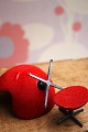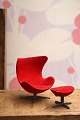 Svane sofa i rød velour , H: 6,6cm. L: 11cm. PRIS: 450 kr.
