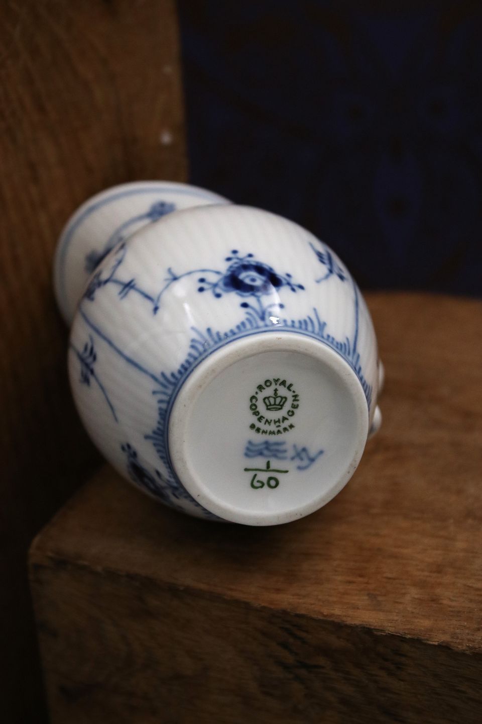 Royal Copenhagen , Musselmalet Riflet flødekande.
