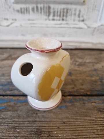 Aluminia gult julehjerte 1. sortering Højde 7,5 cm. Fremstår med små krakeleringer samt en reparation på kanten - se billed