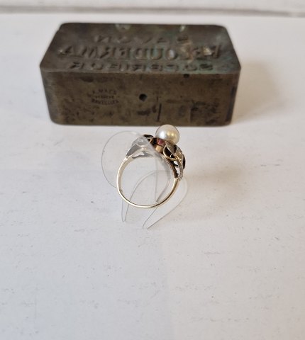 Vintage ring in 14 kt red and white gold with beautiful akoya pearl.