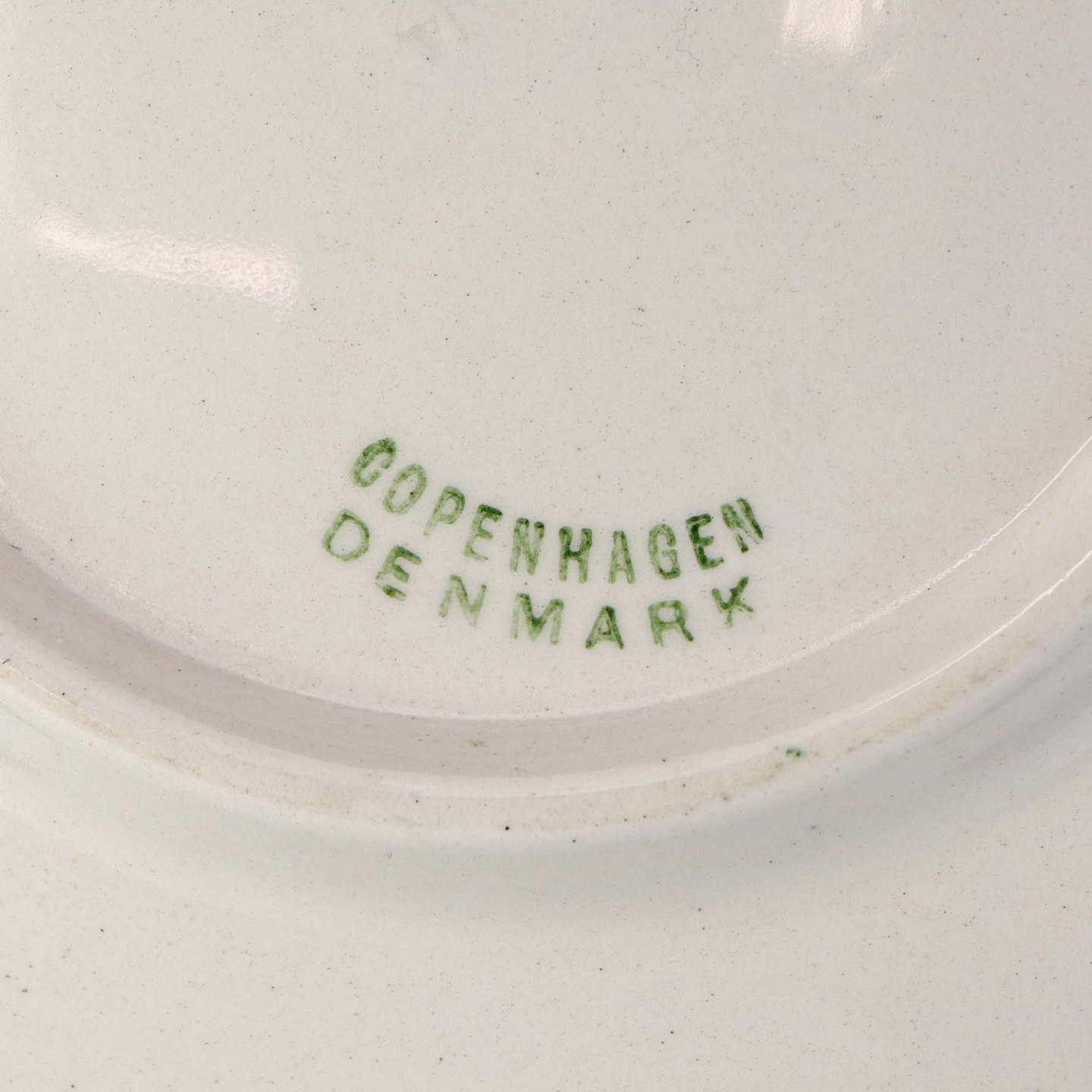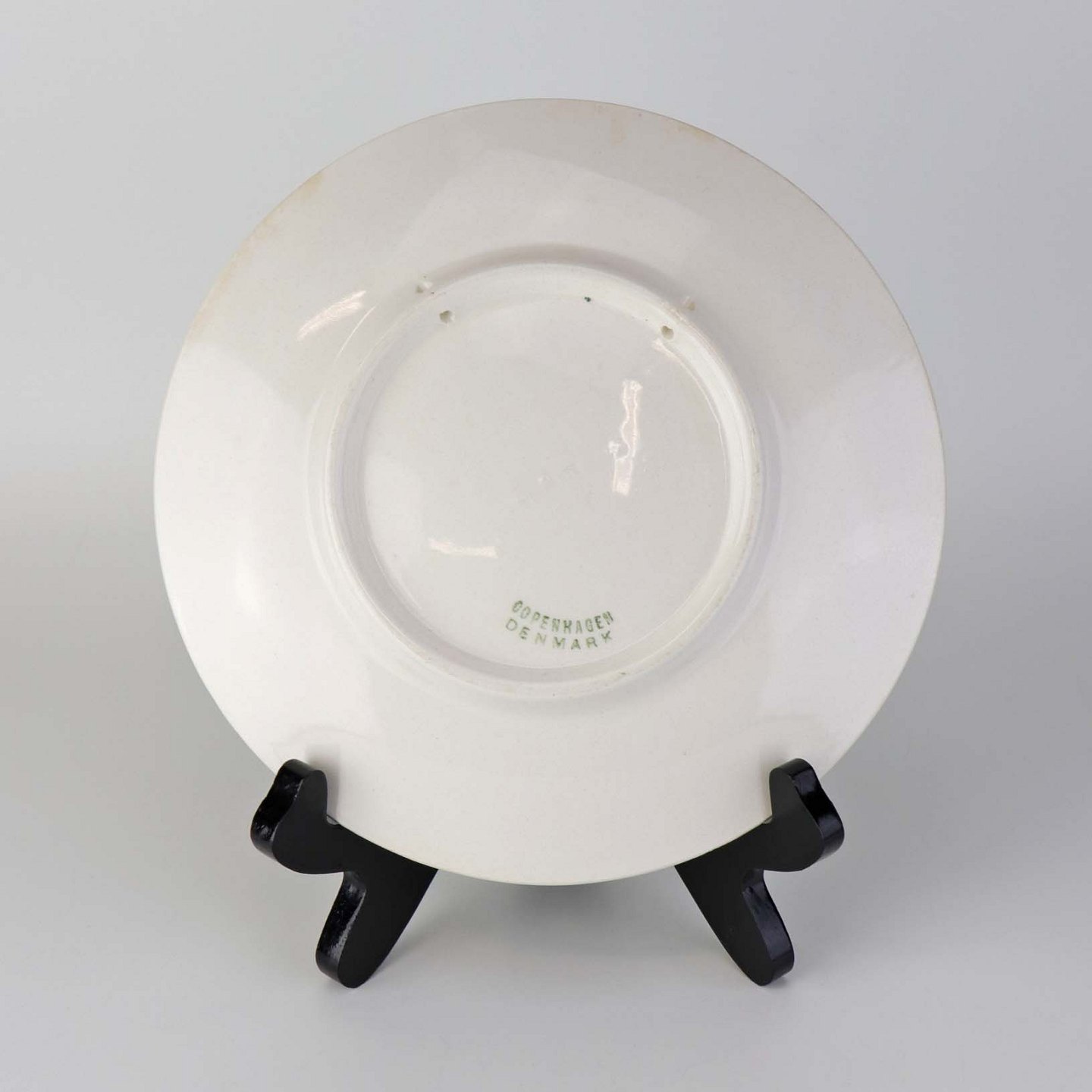 Fremstår med område på bagsiden med lettere brunet kant samt ujævnhed i fajancen på frontsidens top.
