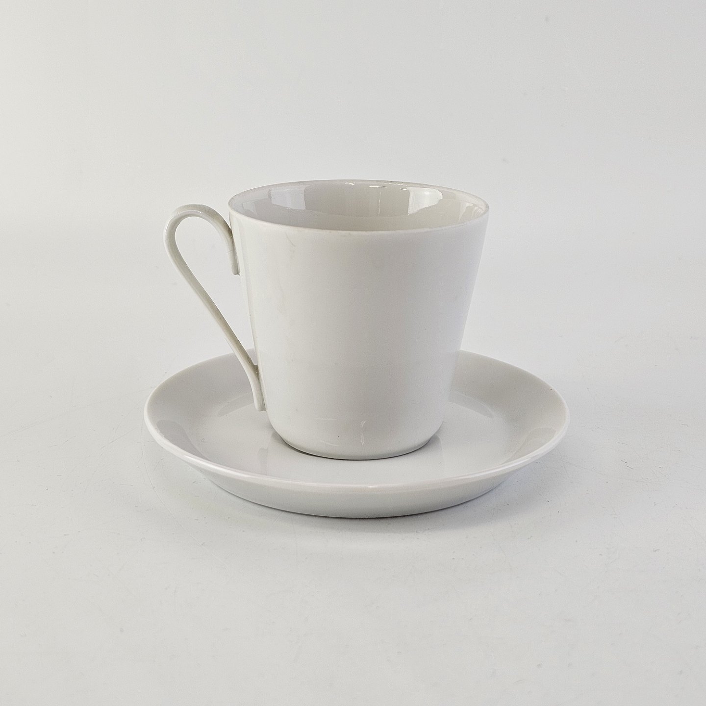 Mokkakop med underkop i porcelæn fra stellet Hvid Glasurfarvet