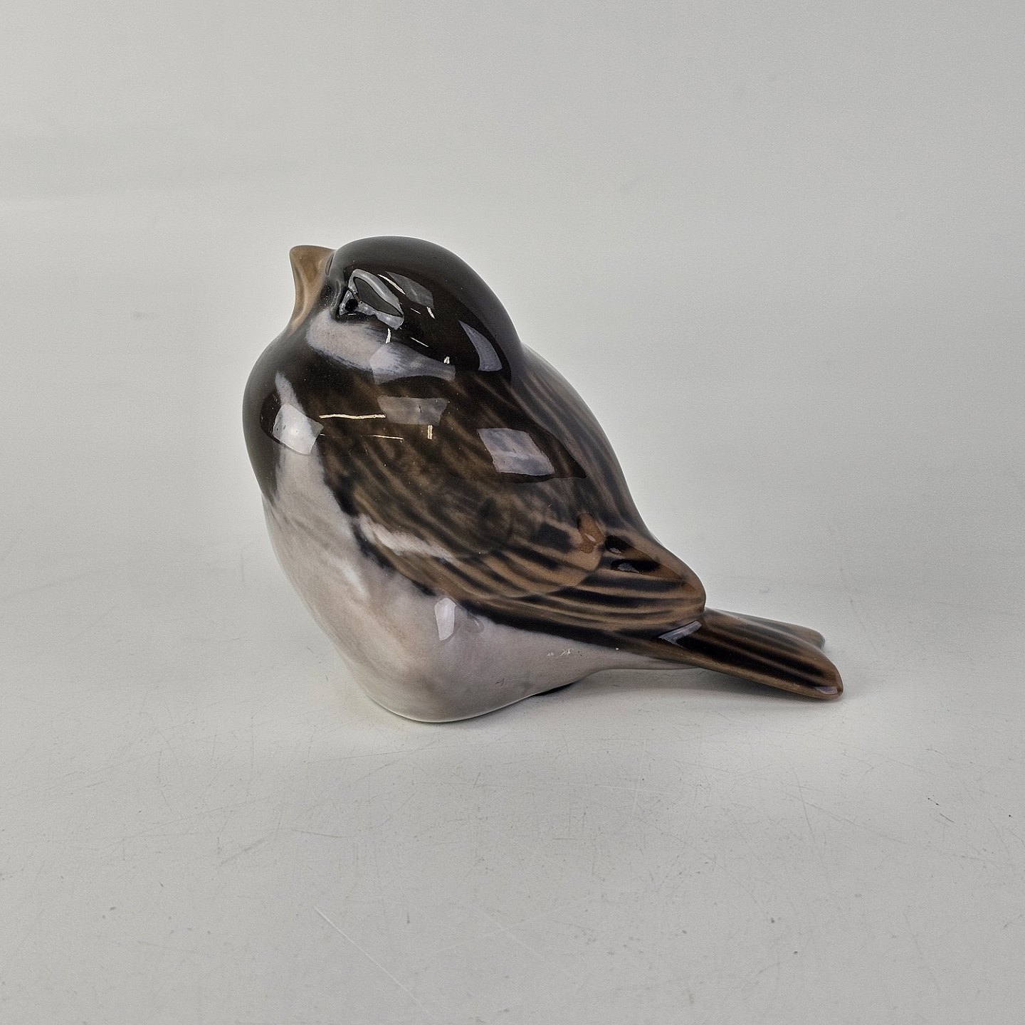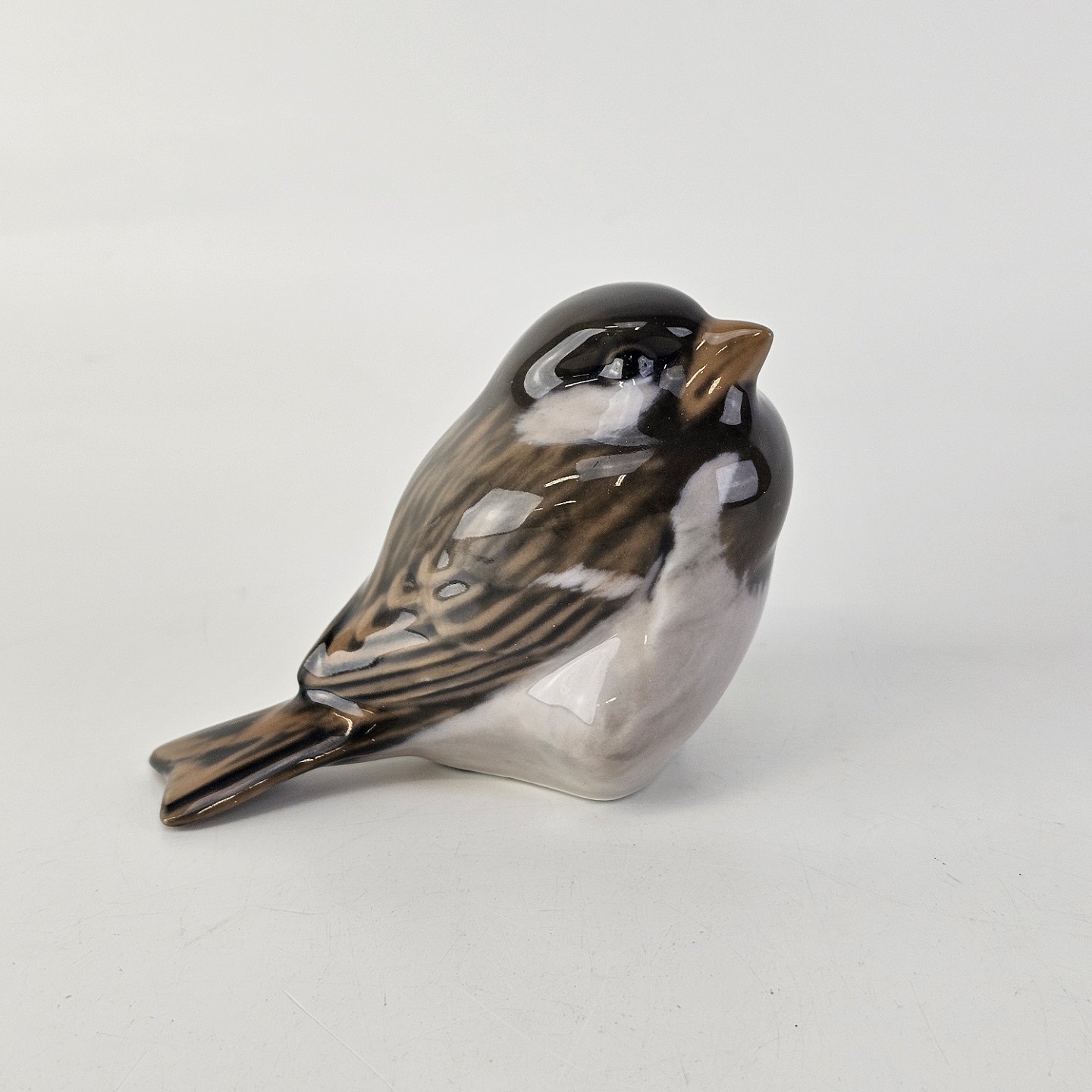 Kongelig figur af porcelæn, med motiv af en siddende gråspurv