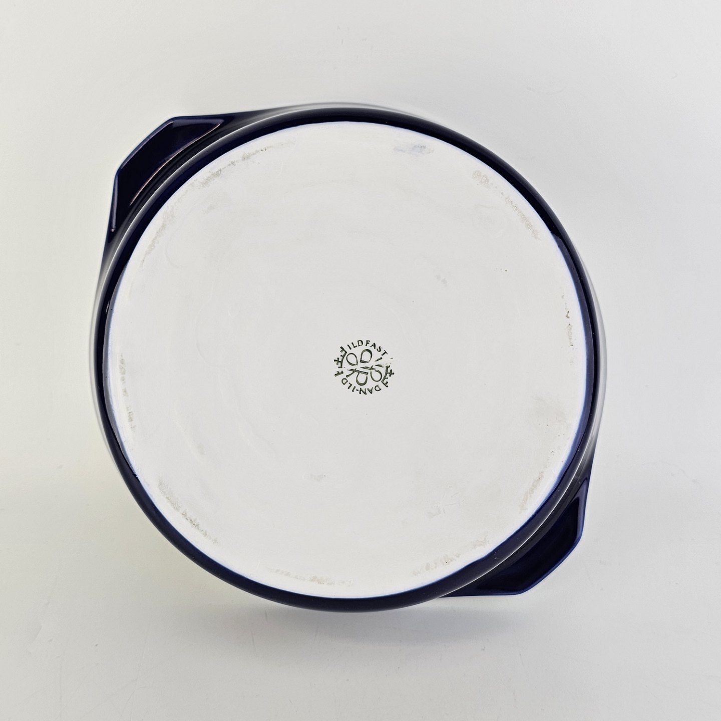 Skål med håndtag i porcelæn fra stellet Blå Glasurfarvet
