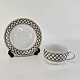 Liselund er hvidt porcelæn dekoreret i lyseblå eller mørkeblå nuancer med fletmønster