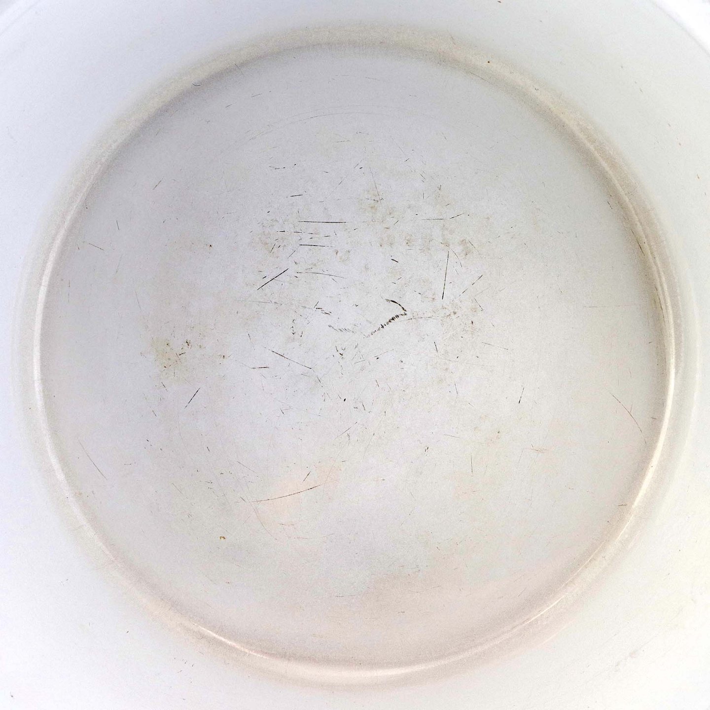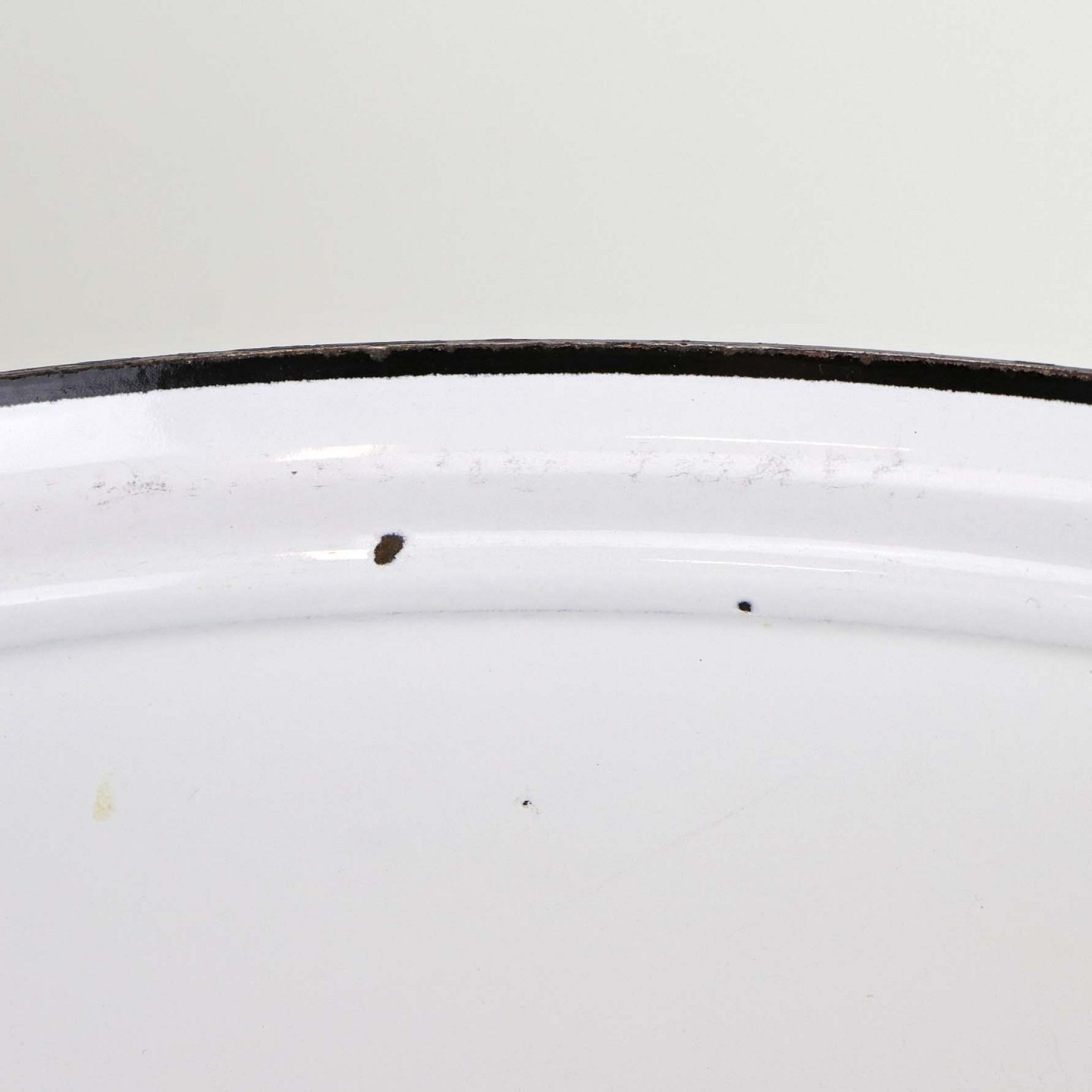Fremstår med mindre ridser på låget, mindre afslag i emaljen på yderside ved bundkant, på indersiden ved topkanten samt brugsspor i bunden af gryden.