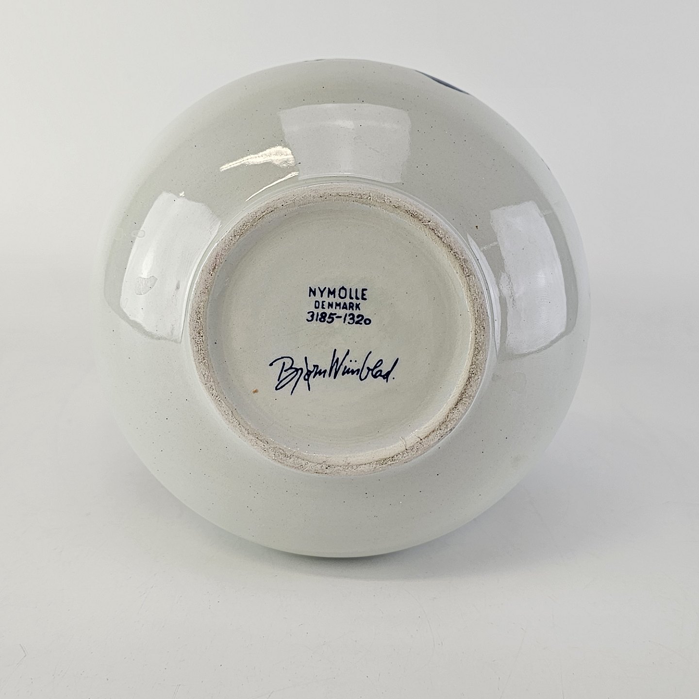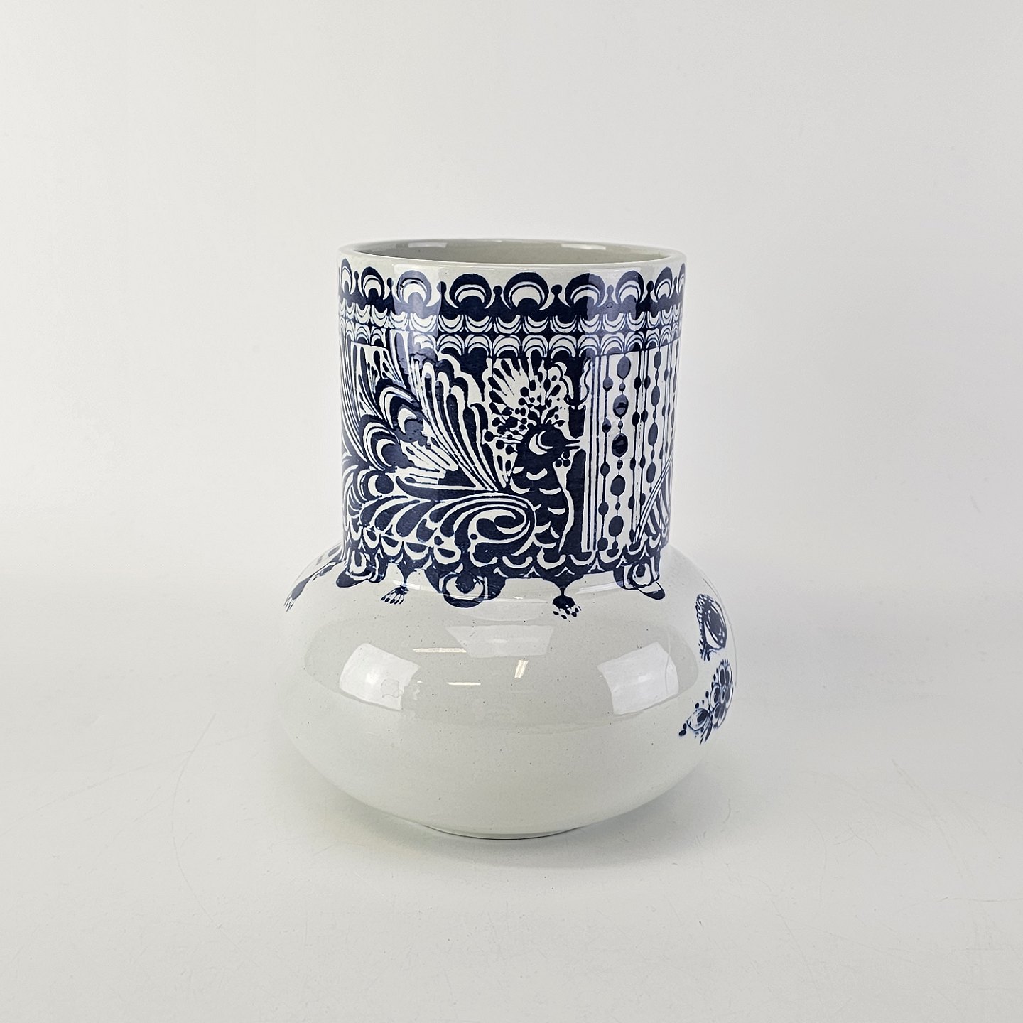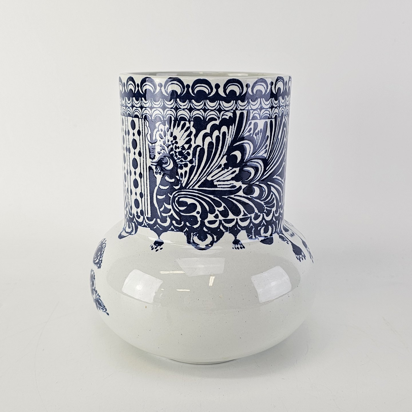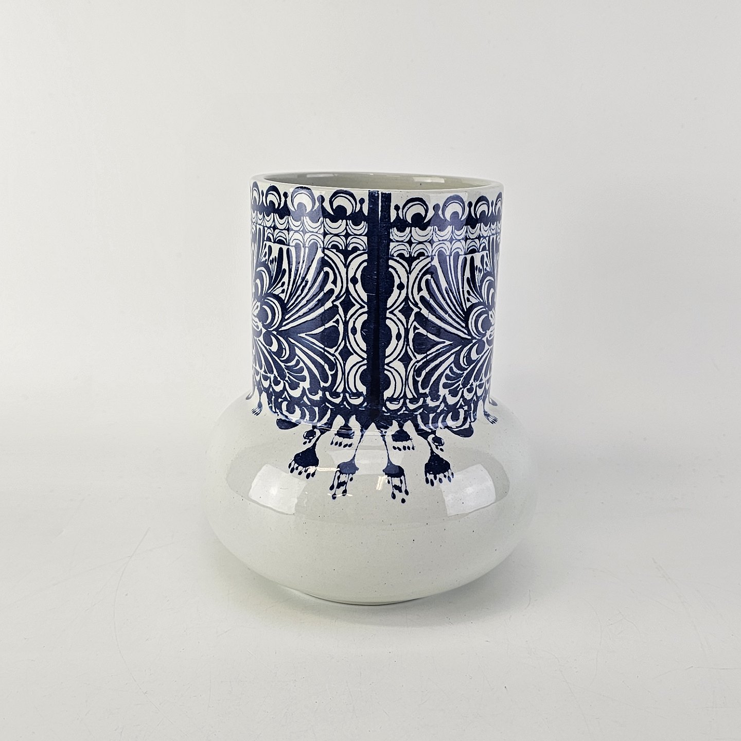 Vase i keramik med motiv af et kvindeansigt og mønster