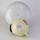 Fremstår med krakkeleringer og mindre sorte nister i glasuren samt ujævnt område på bagsiden af underkoppen.