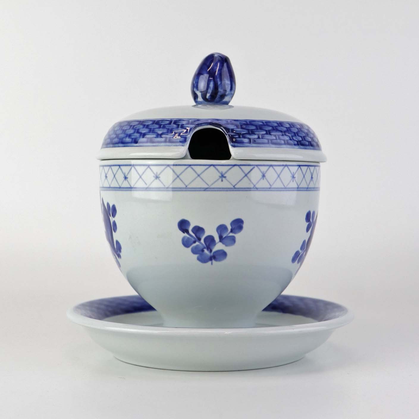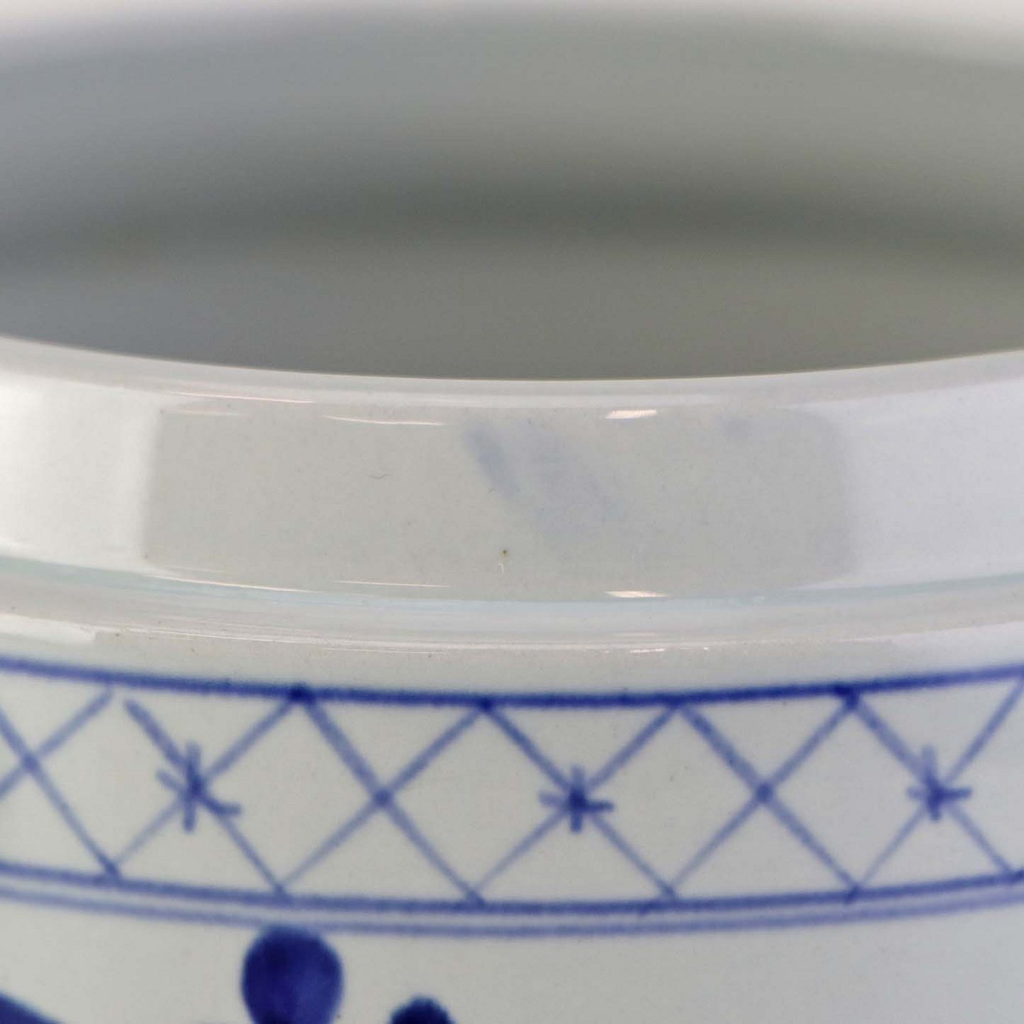 Marmeladekrukke med låg og fast bund i fajance fra stellet Blå Tranquebar. Nr. 11/1171