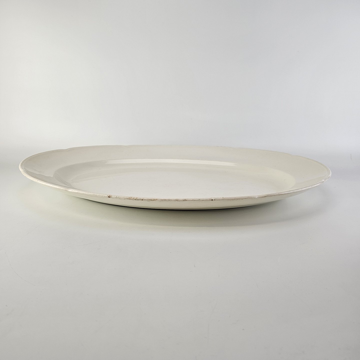Stort ovalt fad i cremefarvet fajance fra stellet Alma