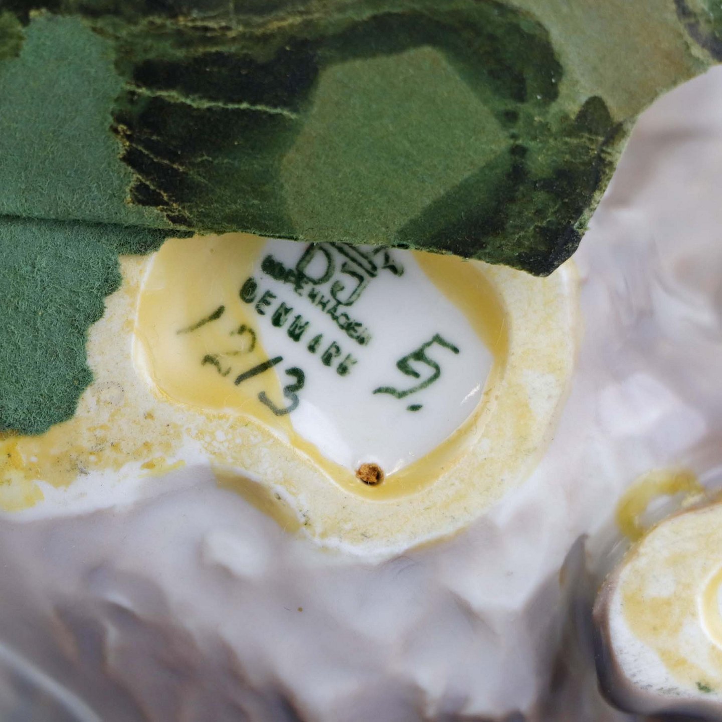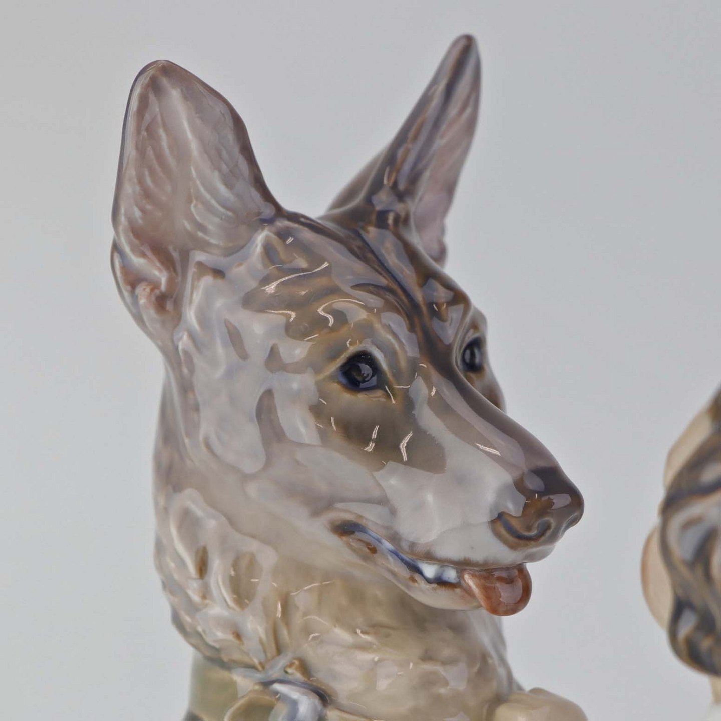 Figur i porcelæn med motiv af pige, som gemmer et købben bag ryggen med siddende schæferhund. Nr. 1213