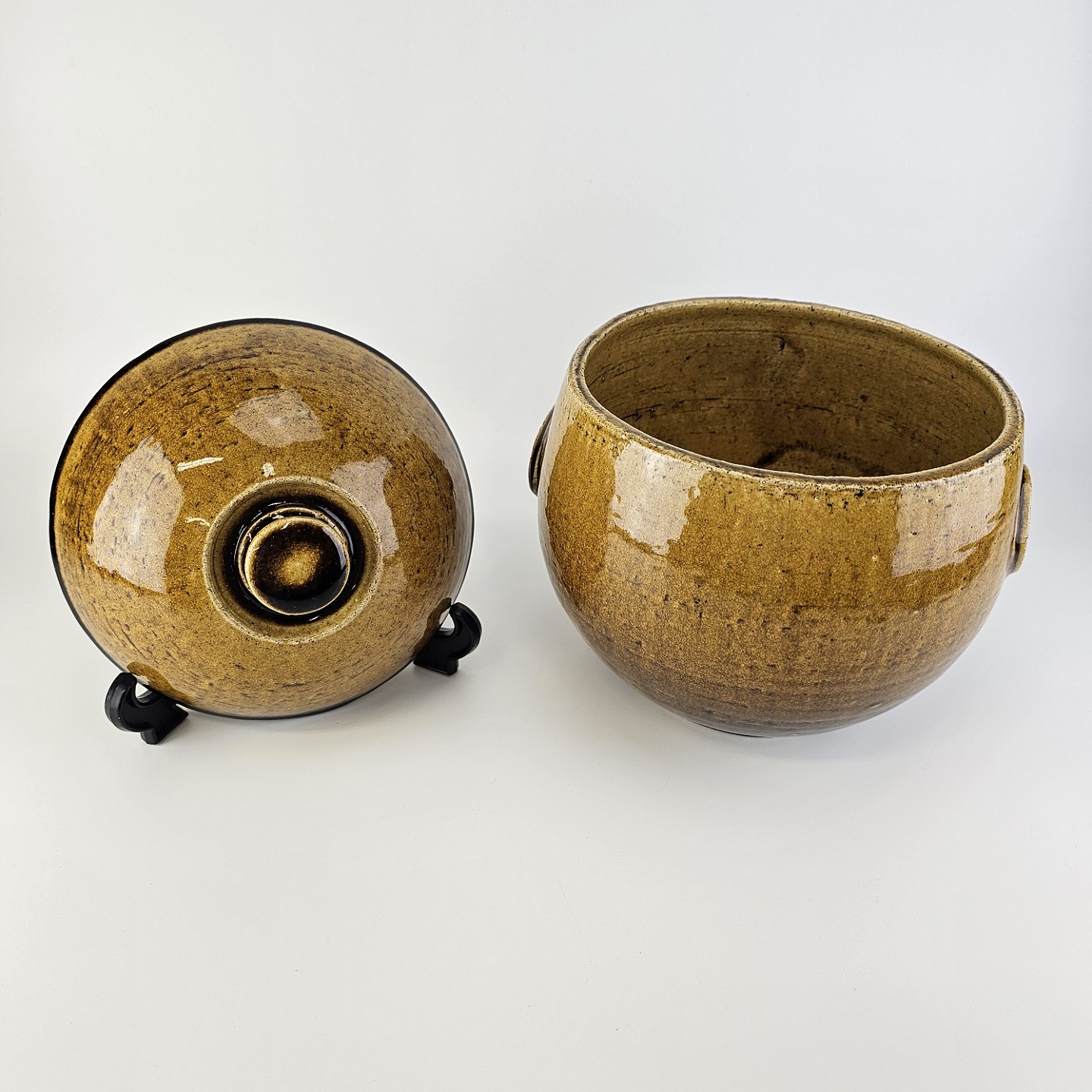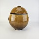Æggeformet krukke med låg i brun glaseret keramik