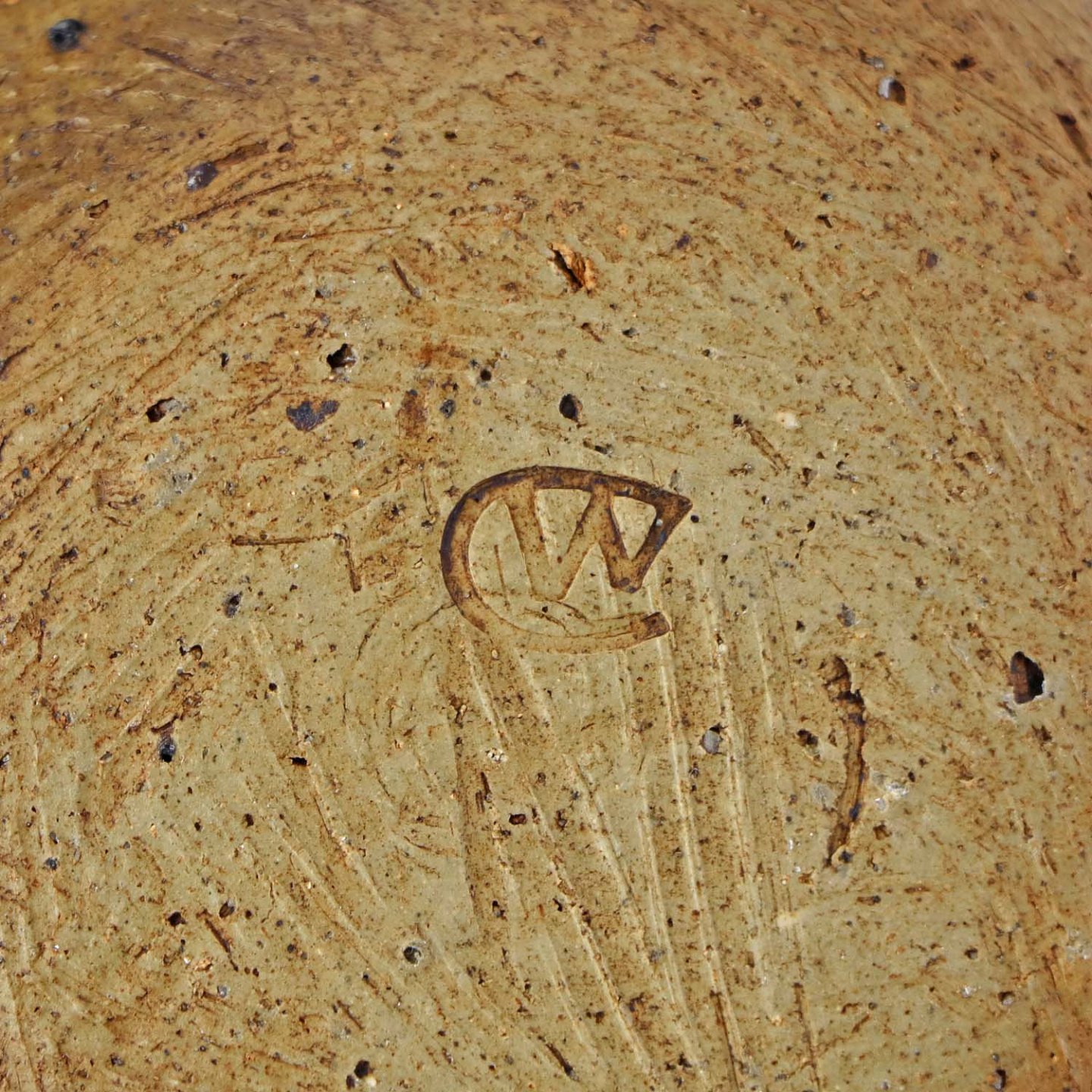 Lille rund skål i keramik. Glaseret indvendigt med i beige, brun og blå glasur.