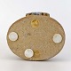 Lille oval skål i keramik med lysblå glasur på indersiden samt delvist glaseret sol mønster på ydersiden.