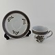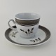Kop med underkop i fajance fra stellet Brun Tranquebar fra år 1919