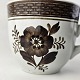 Kop med underkop i fajance fra stellet Brun Tranquebar fra år 1919