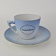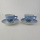 Kopper med underkopper i blåmalet porcelæn dekoreret med motiver af danske slotte og guldkant