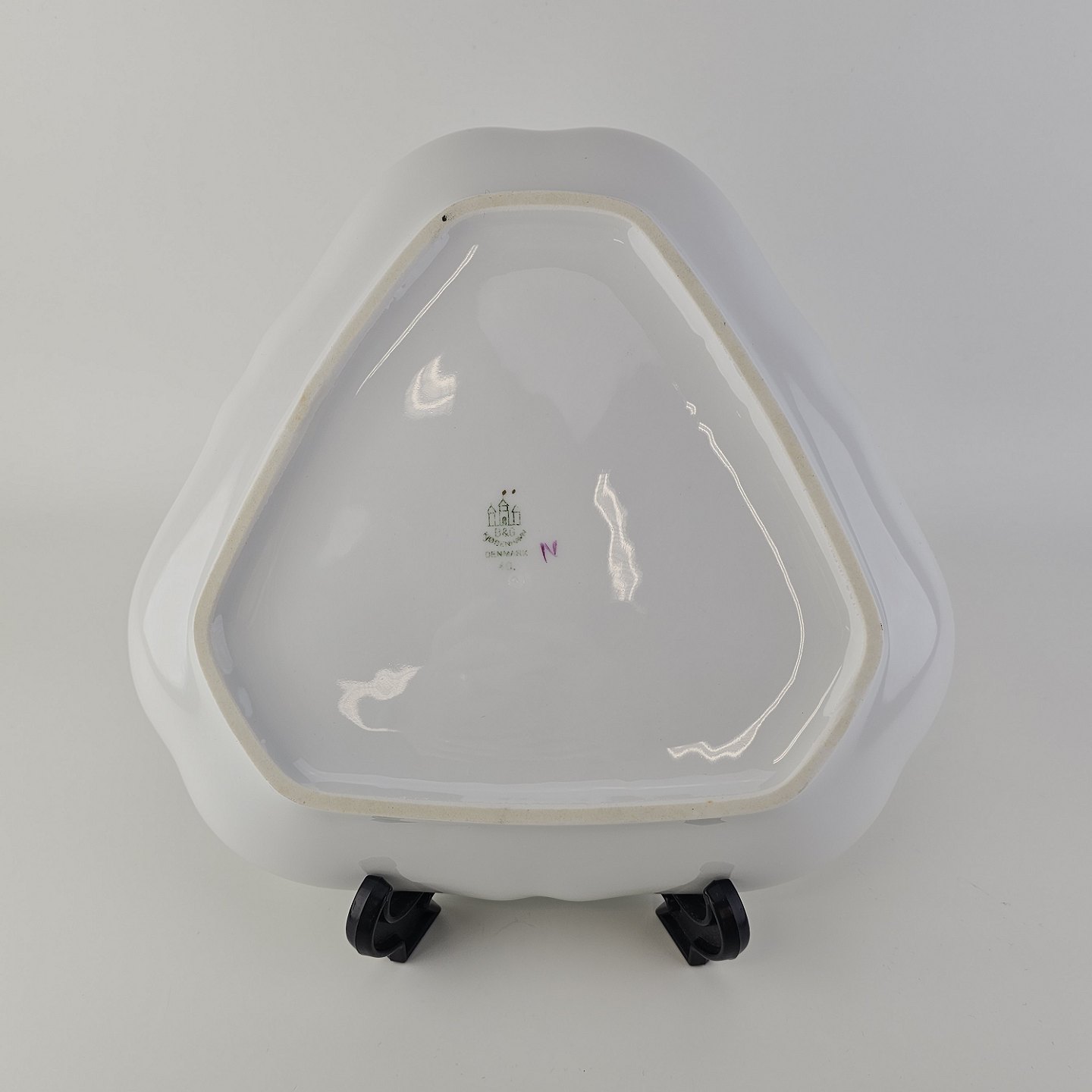 Trekantet fad til salt, peber og sennep i porcelæn fra stellet Antonius