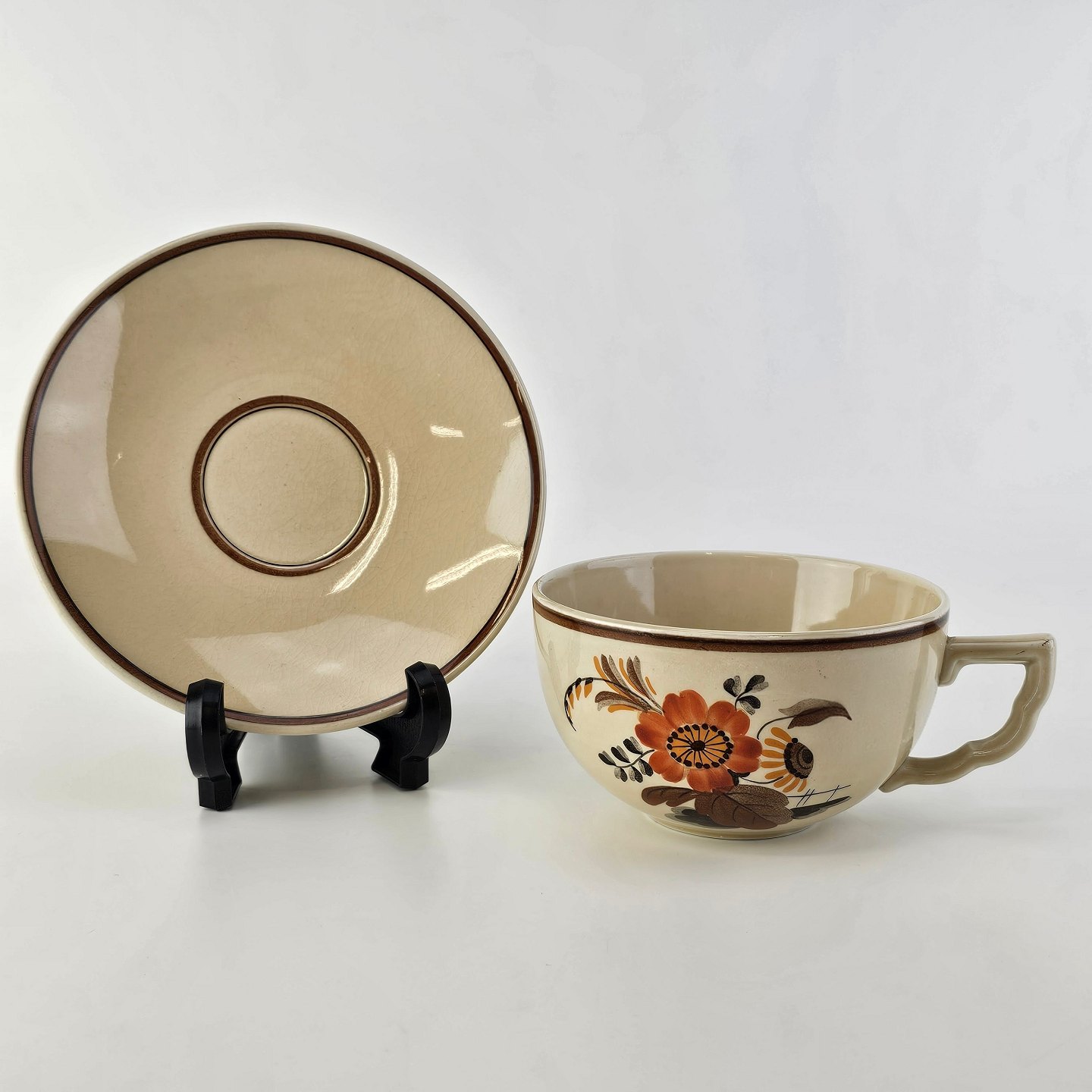 Kop med underkop i fajance fra stellet Knud