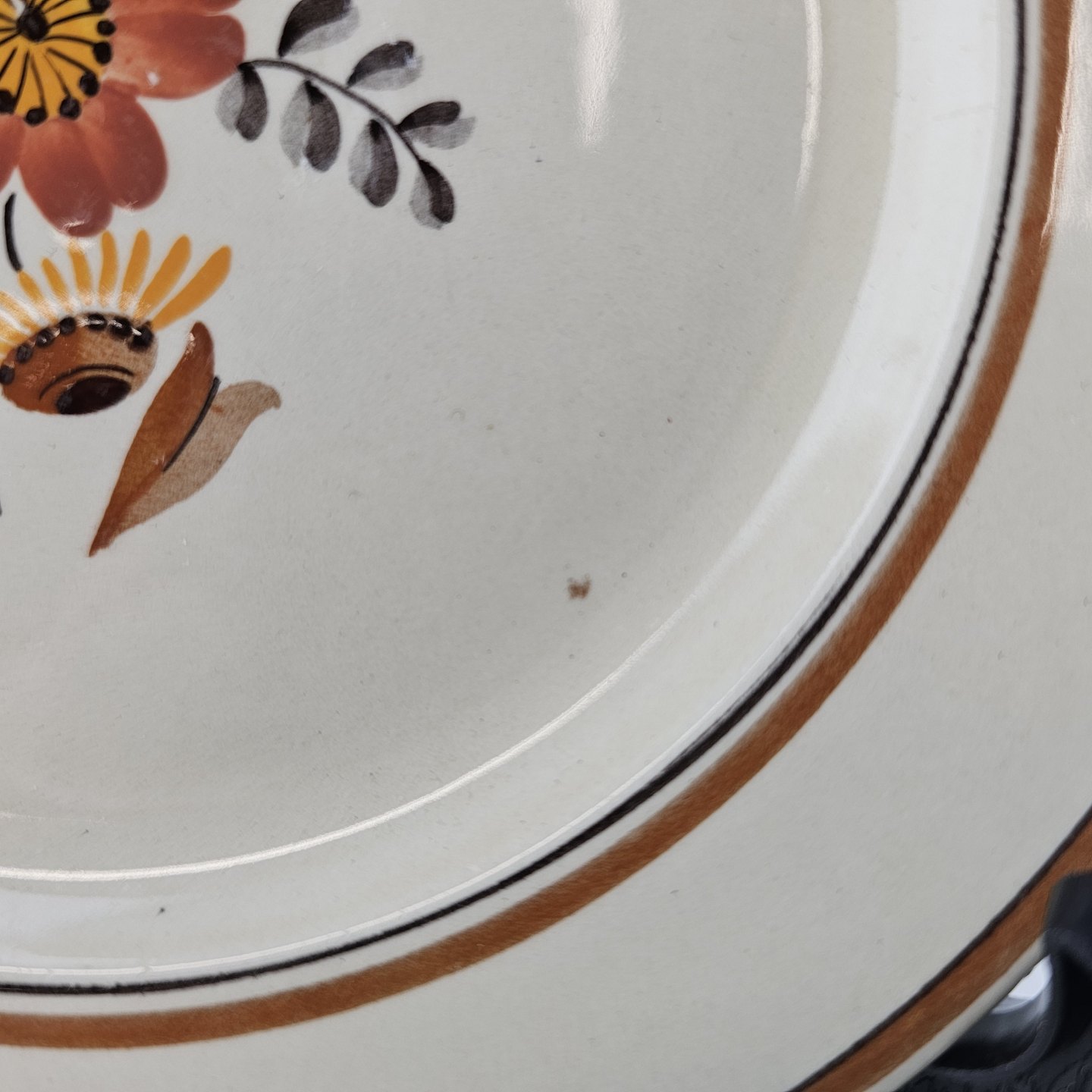 Knud er cremefarvet fajance dekoreret med flettet kant og brune og orange blomster. Stellet blev produceret i år 1934-1963.