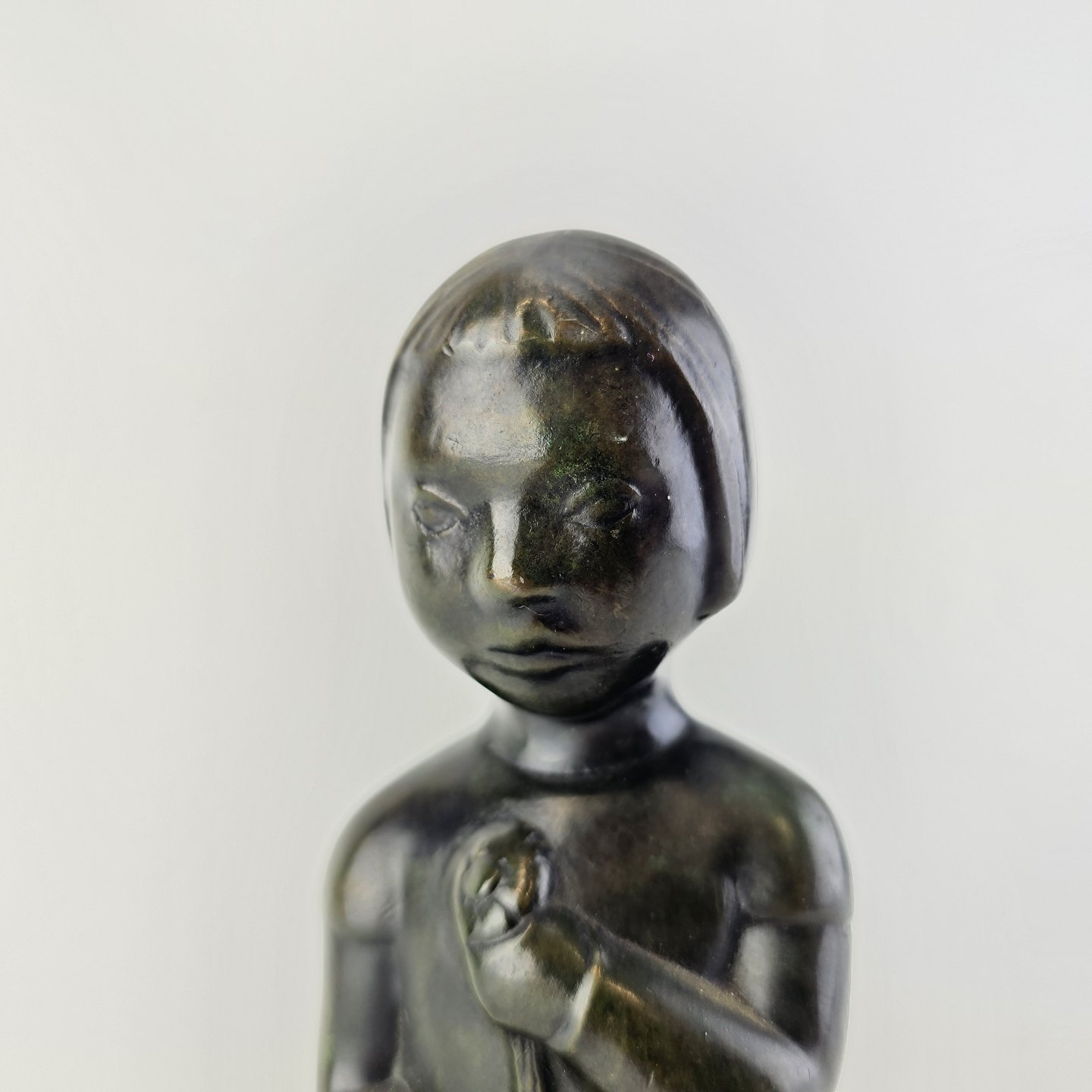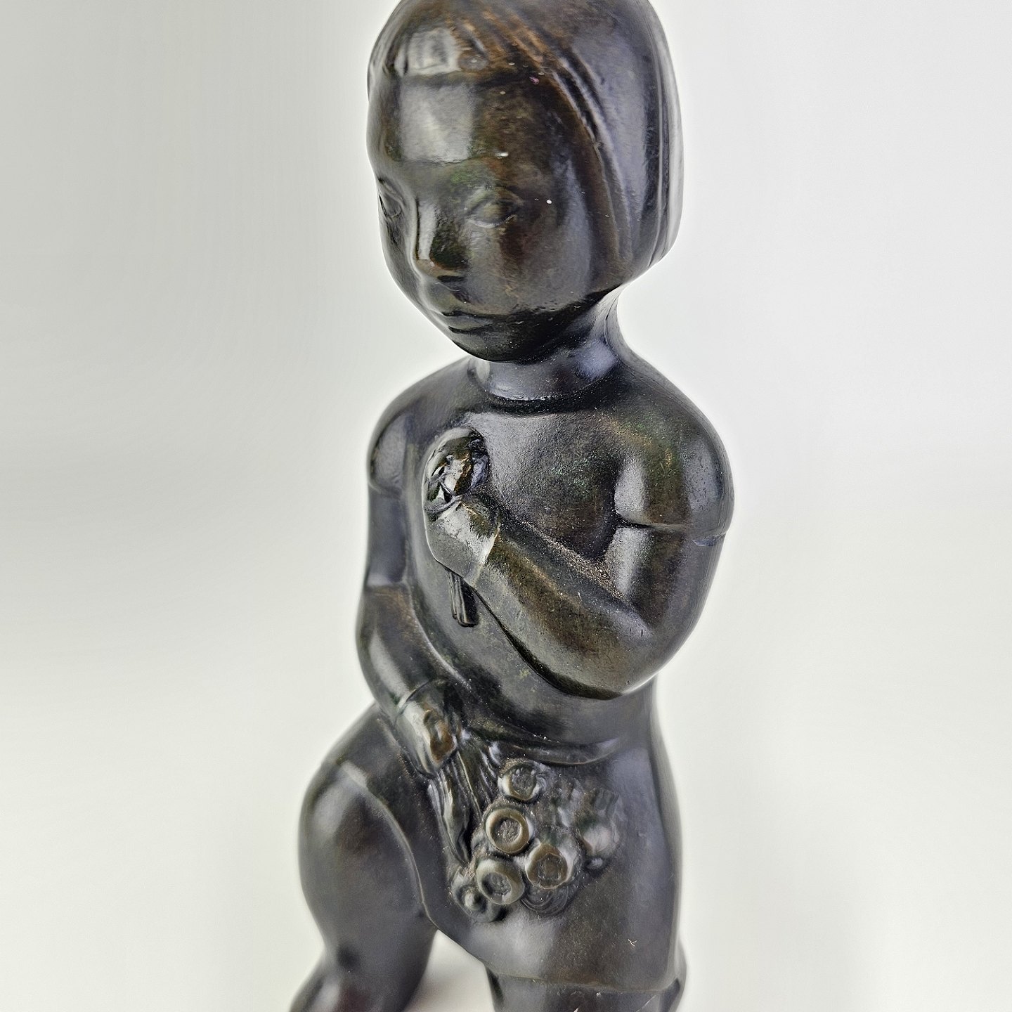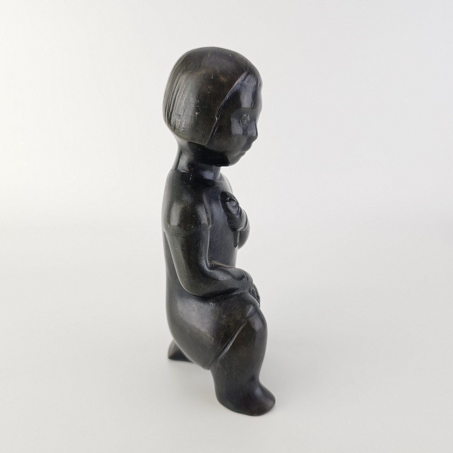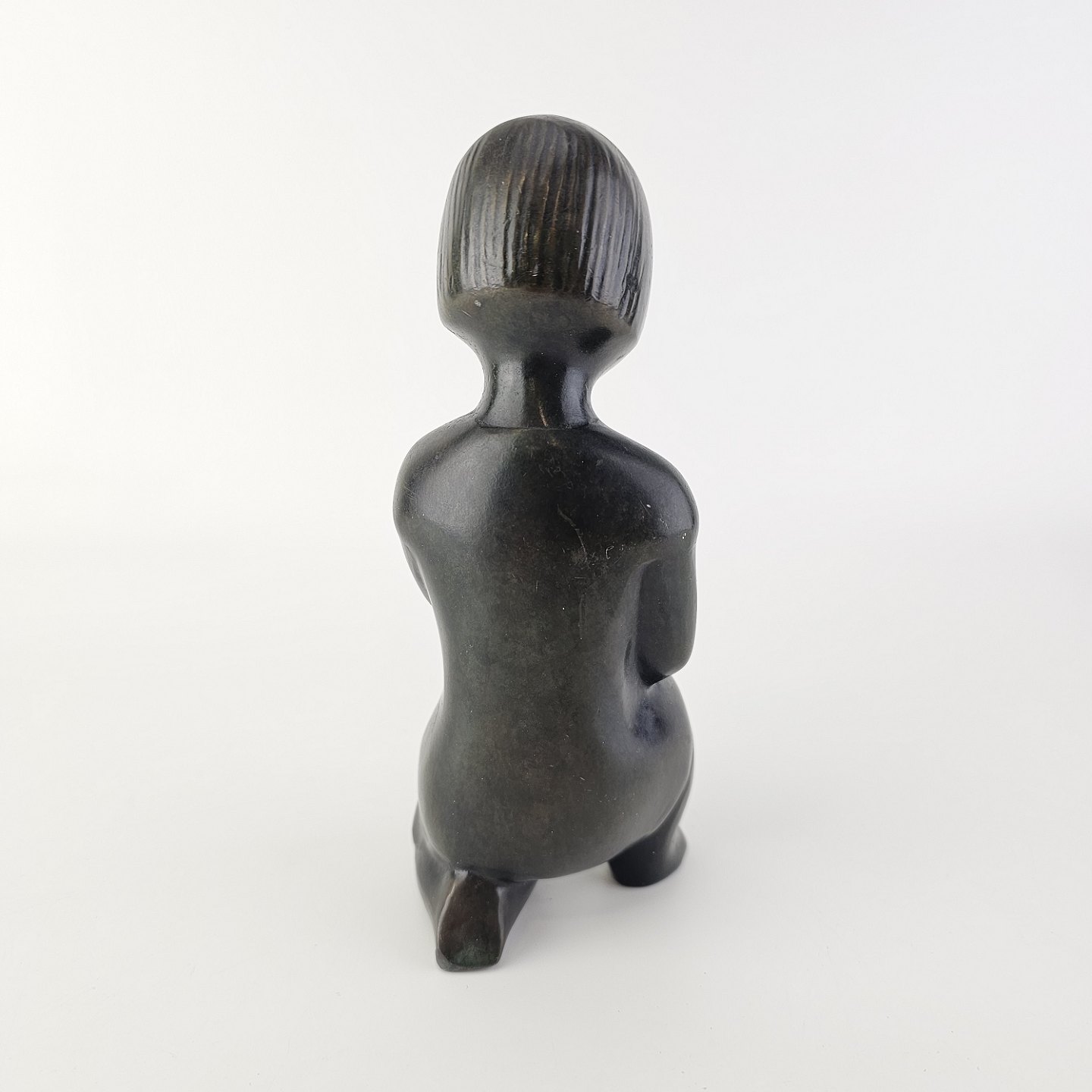 Grønlandsk figur med motiv af en knælende person med blomster Diskometal