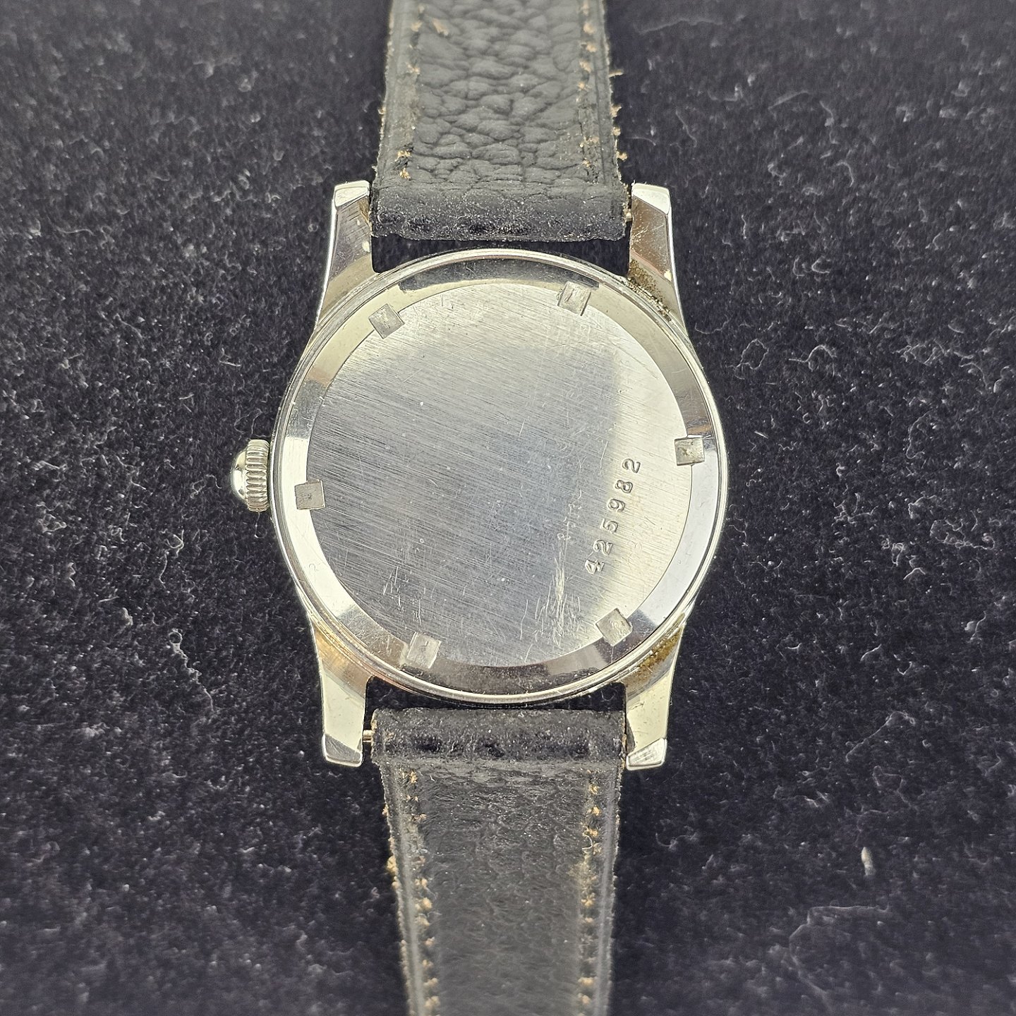 Armbåndsur med læderrem, stemplet med serienummer 425982
