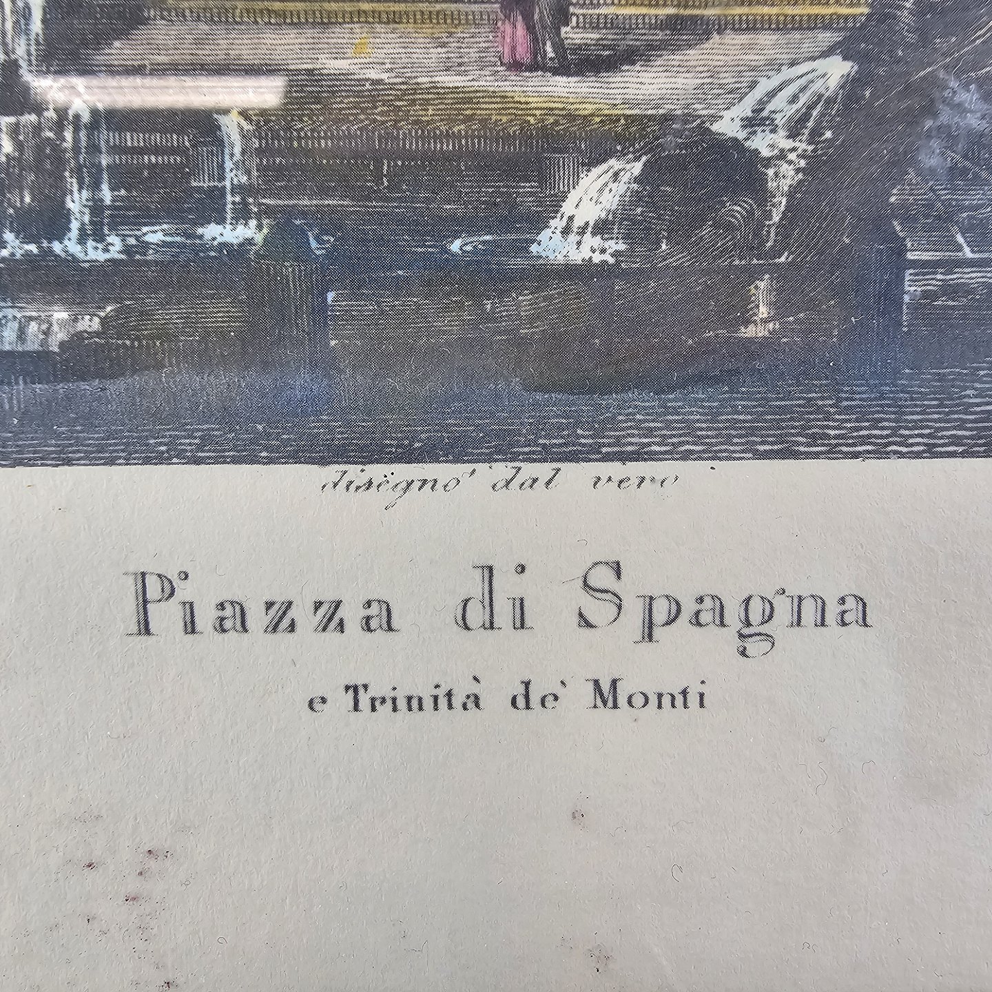 Bogtryk på papir med motiv af den spanske trappe i Rom, monteret i sort ramme