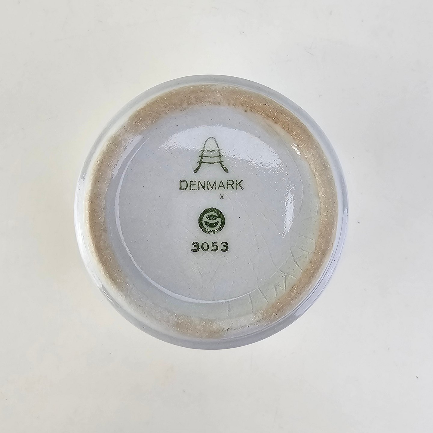 Blåkant er stel i hvid fajance med dekoration af en blå streg på kanten