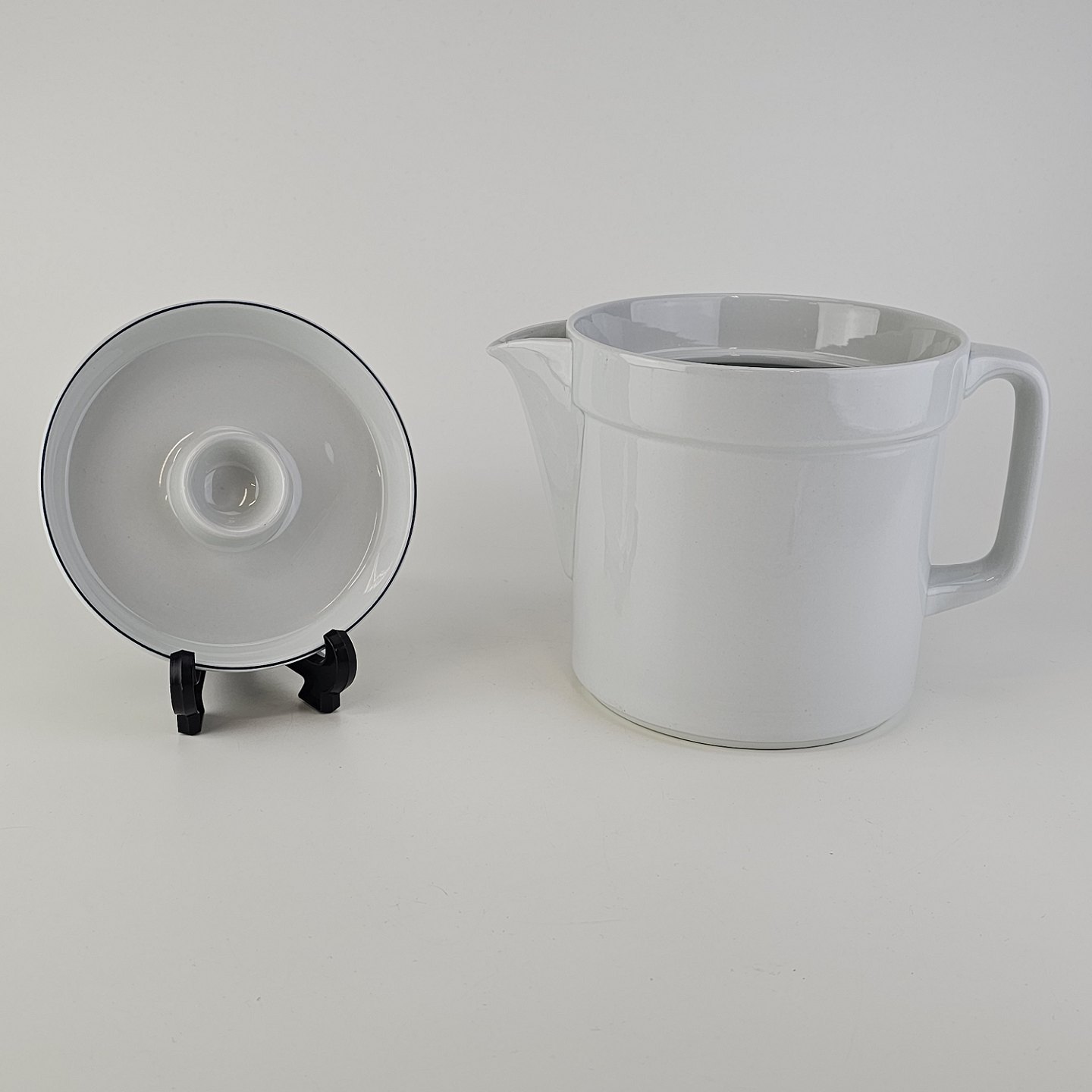 Blåkant er stel i hvid fajance med dekoration af en blå streg på kanten
