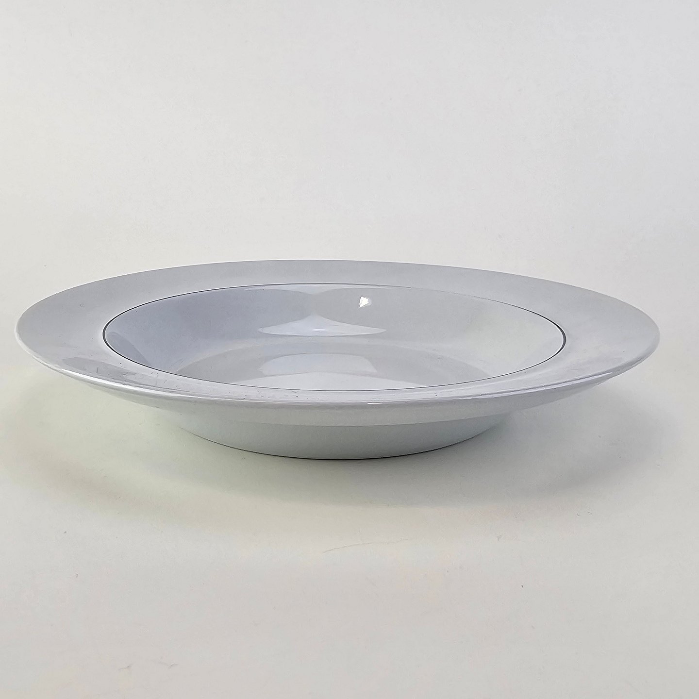 Blåkant er stel i hvid fajance med dekoration af en blå streg på kanten