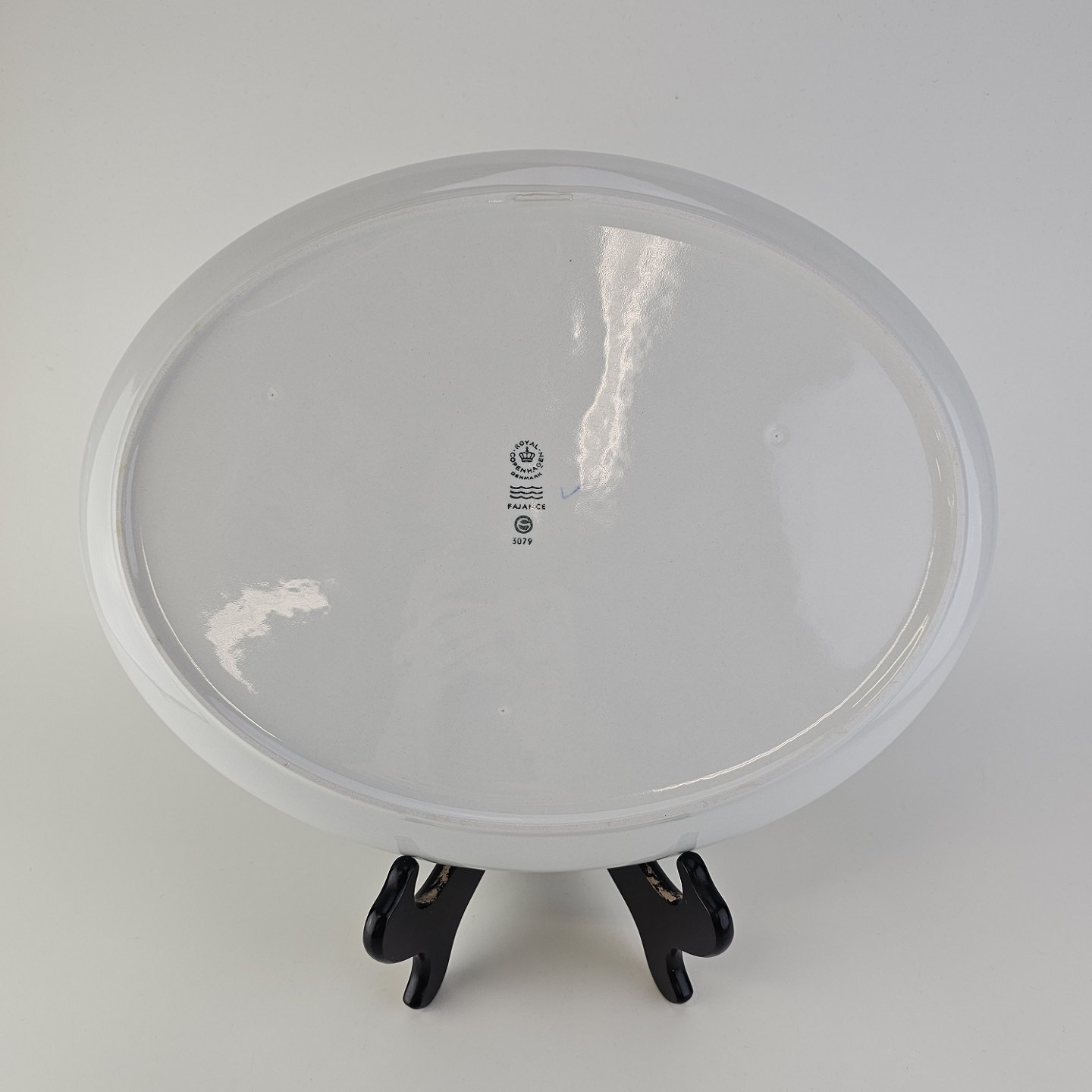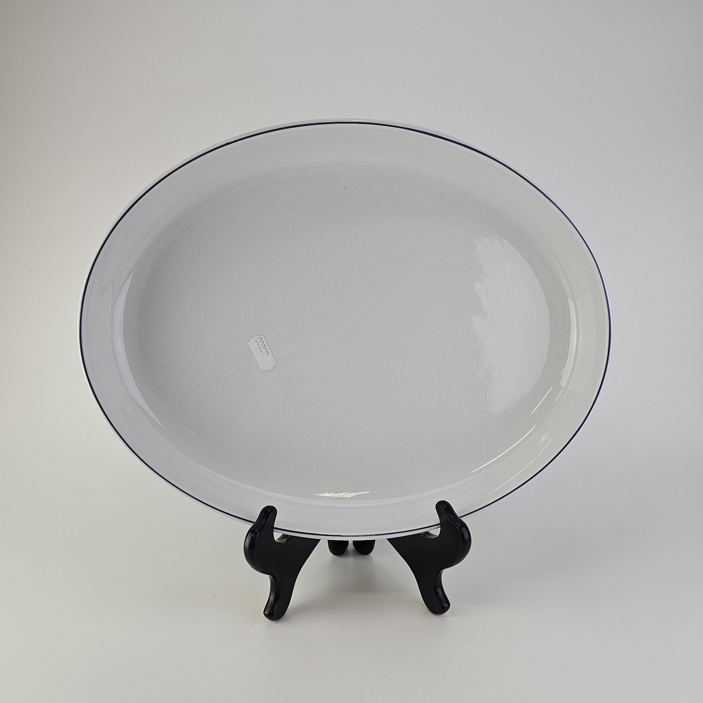 Blåkant er stel i hvid fajance med dekoration af en blå streg på kanten