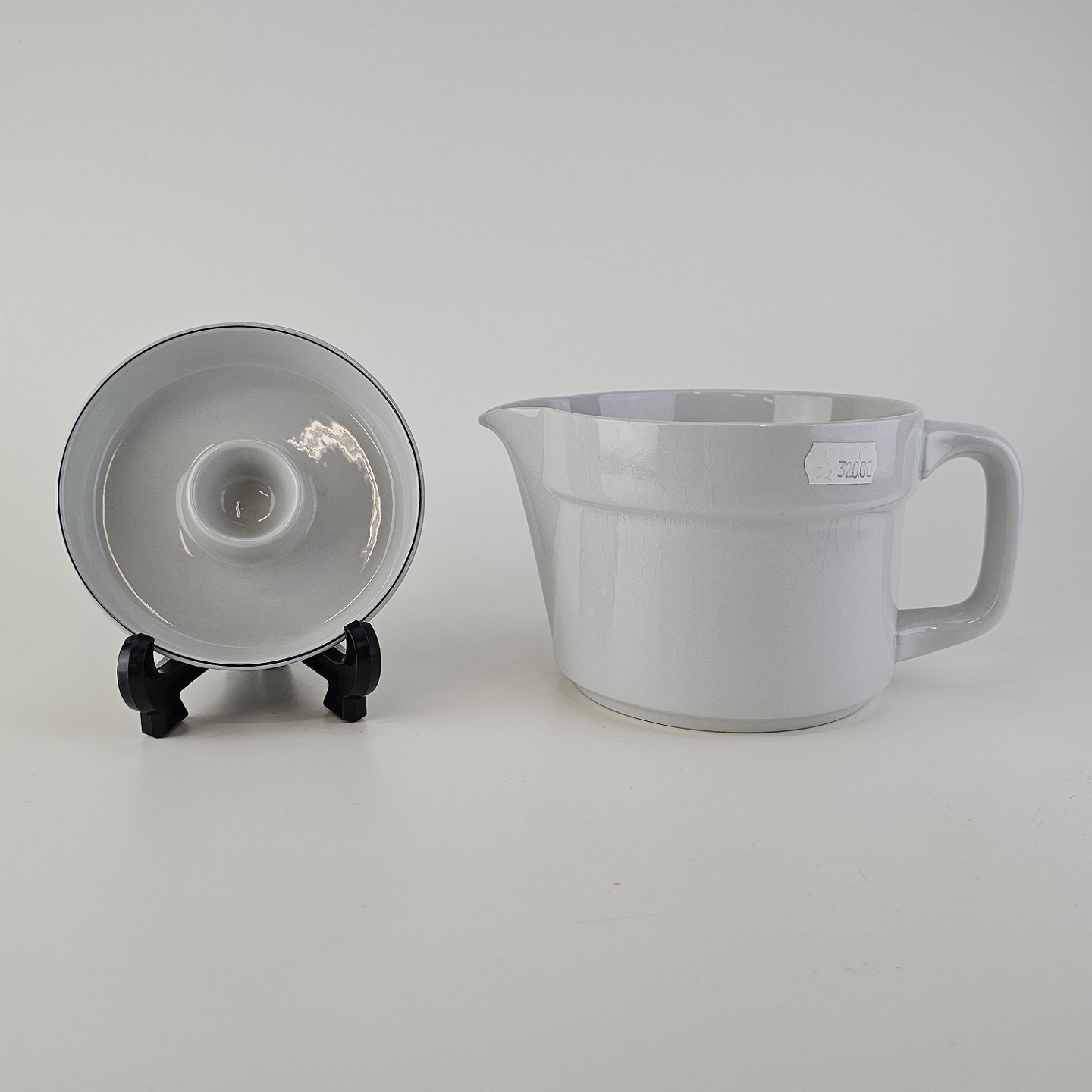 Blåkant er stel i hvid fajance med dekoration af en blå streg på kanten