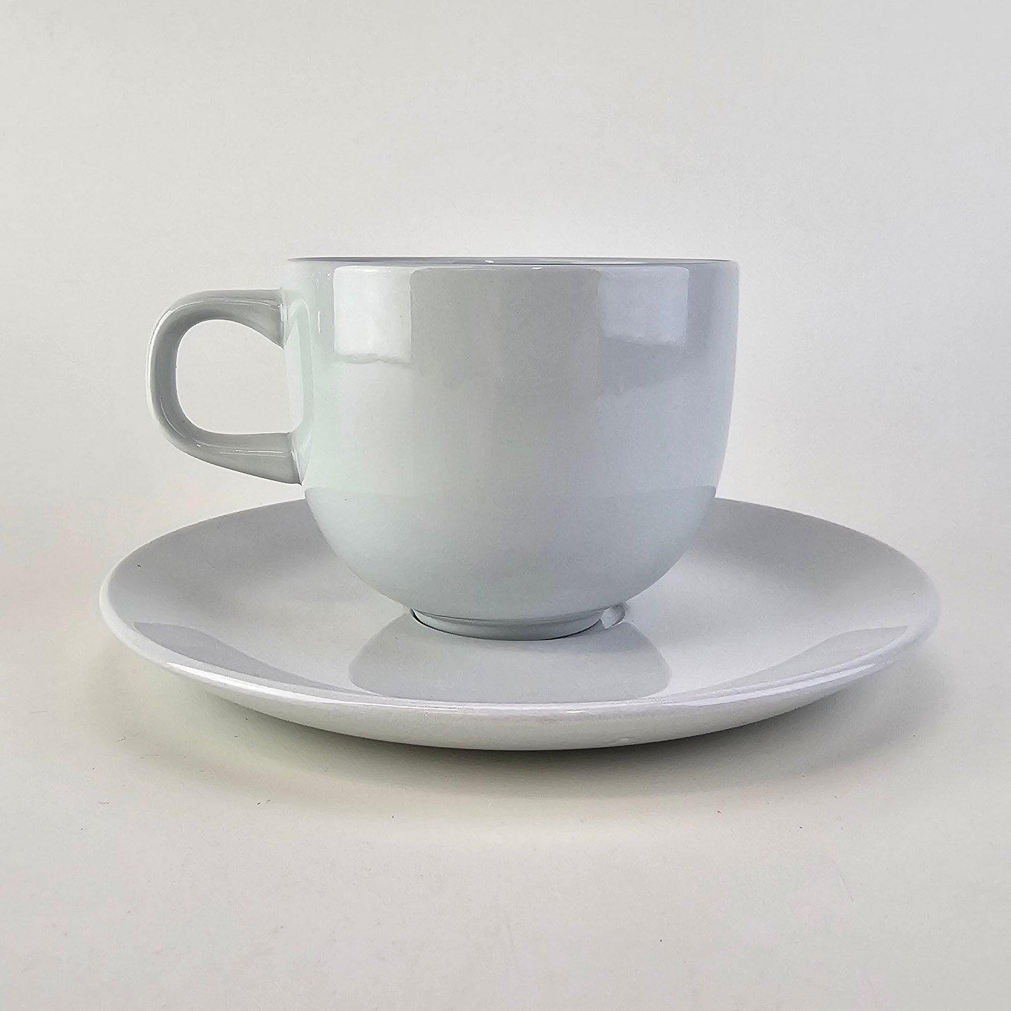 Kaffekop med underkop i fajance fra stellet Blåkant
