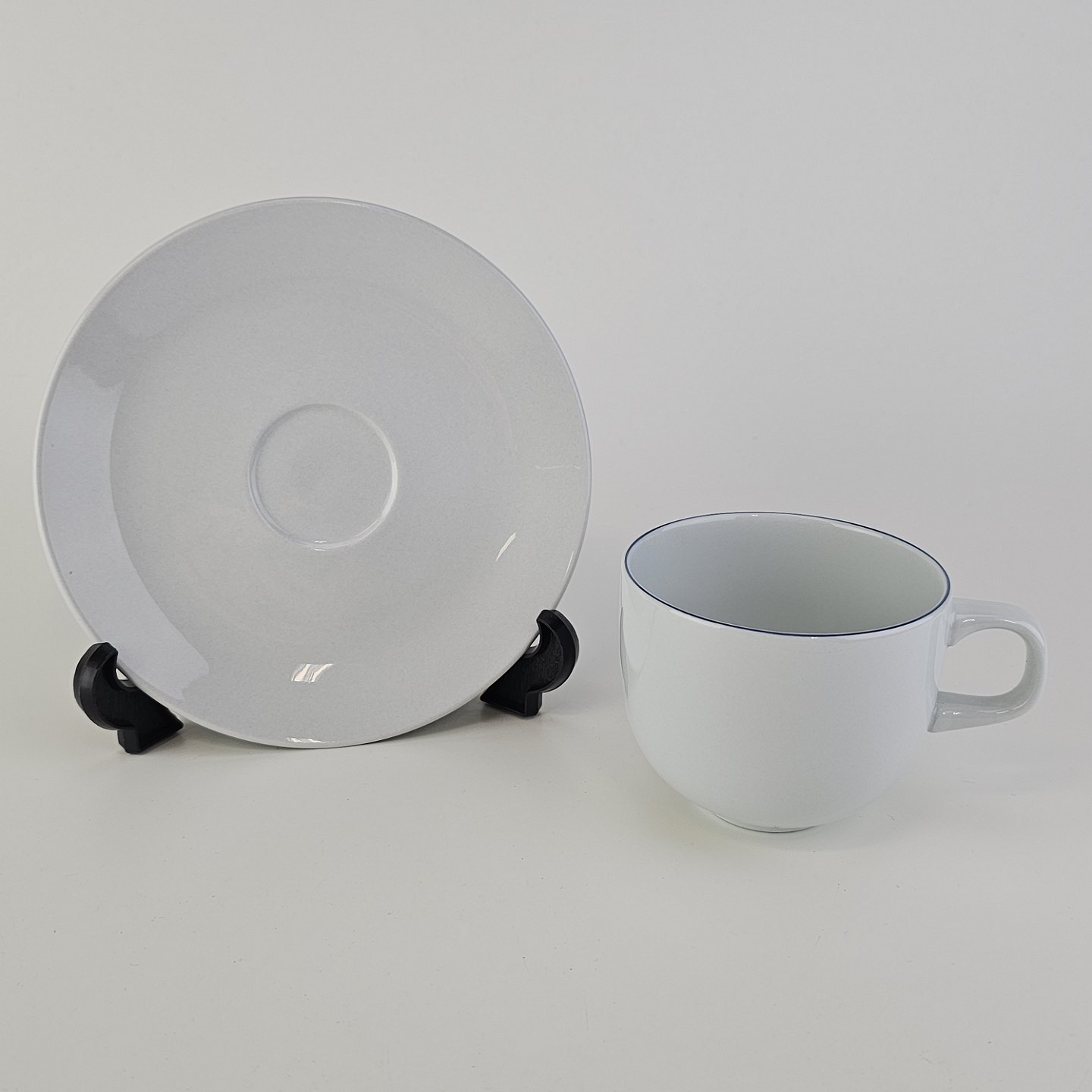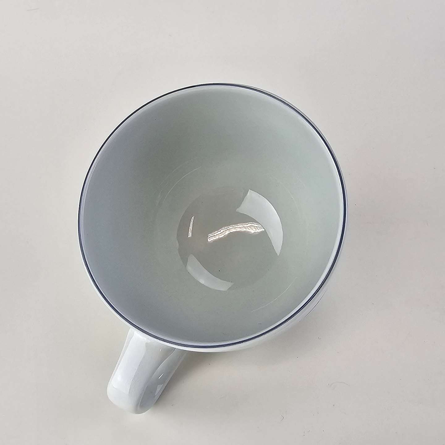 Blåkant er stel i hvid fajance med dekoration af en blå streg på kanten