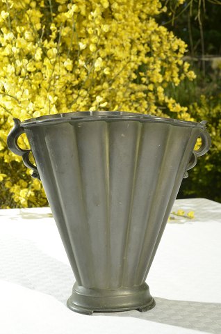Just Andersen Vase Metall bronziet (disko-Metall). Vase nr. D 20 Höhe 16,3 cm. Breite 17 cm. Altersentsprechende Gebrauchsspuren an der Bräunung. Design Just Andersen ( 1884-1943 ) Dänemark.