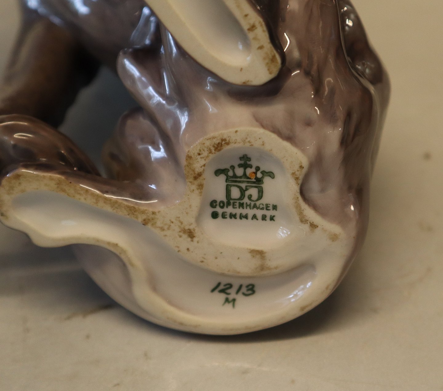 Beskrivelse: Dahl Jensen. 1213 Pige med schæferhund 25 cm Mærket med kongelig krone og DJ Copenhagen I hel og fin stand.