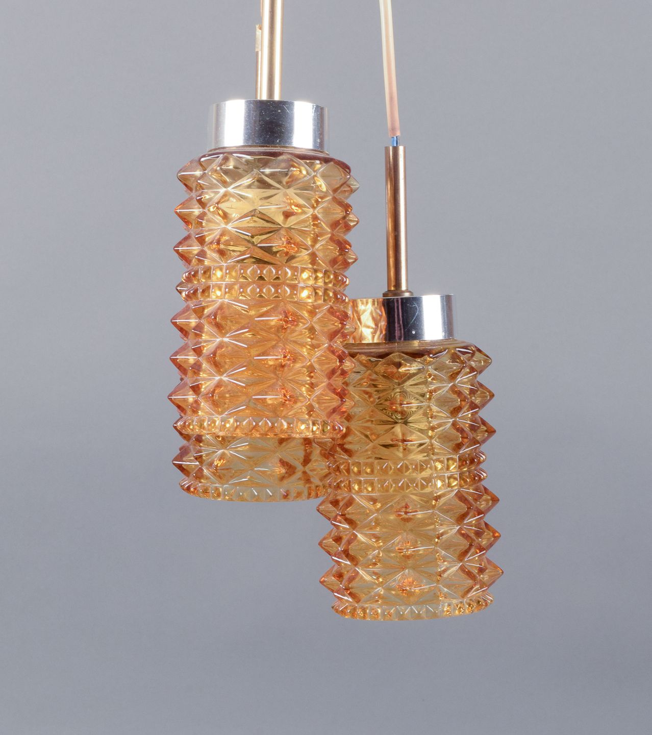 Helena Tynell (1918-2016), finsk designer. Tre små loftslamper i rustfrit stål og røgfarvet glas. Ca. 1970. I perfekt stand. Mål: H 20,0 cm. x D 7,0 cm.