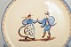 Dansk keramik fra midten af 1900-tallet er ofte præget af en legende og folkloristisk dekorationsstil, hvor motiver fra hverdagsliv og traditioner blev gengivet i en enkel, næsten naivistisk formsprog. Disse fade repræsenterer en kombination af funktionelt brugskeramik og dekorativ kunsthåndværk, som i dag er eftertragtet af samlere for deres tidstypiske udtryk og kulturhistoriske værdi.