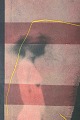A characteristic graphic work by the Spanish-Uruguayan artist Juan Cano, combining figurative and abstract elements through layered fields and spontaneous lines. The motif depicts a stylized female figure in combination with geometric structures and expressive yellow lines, creating a strong visual contrast.